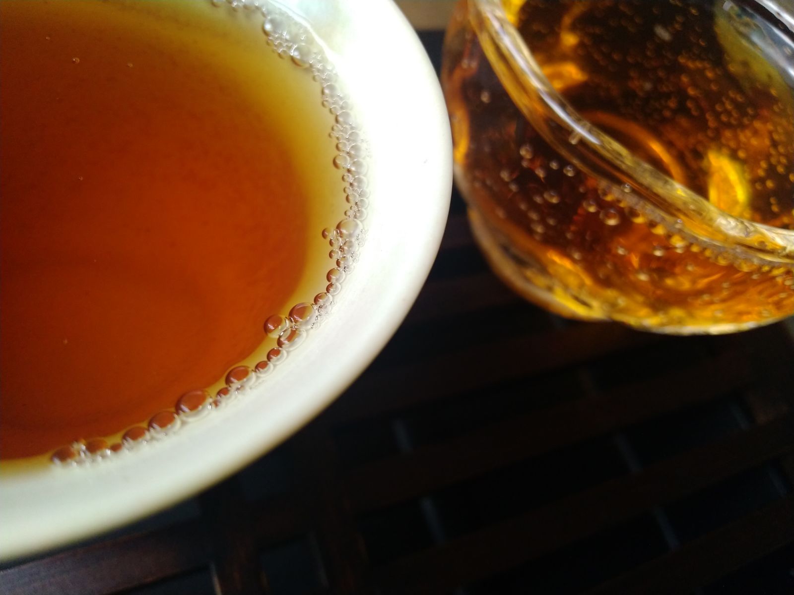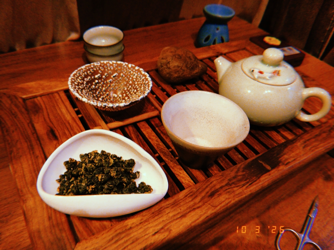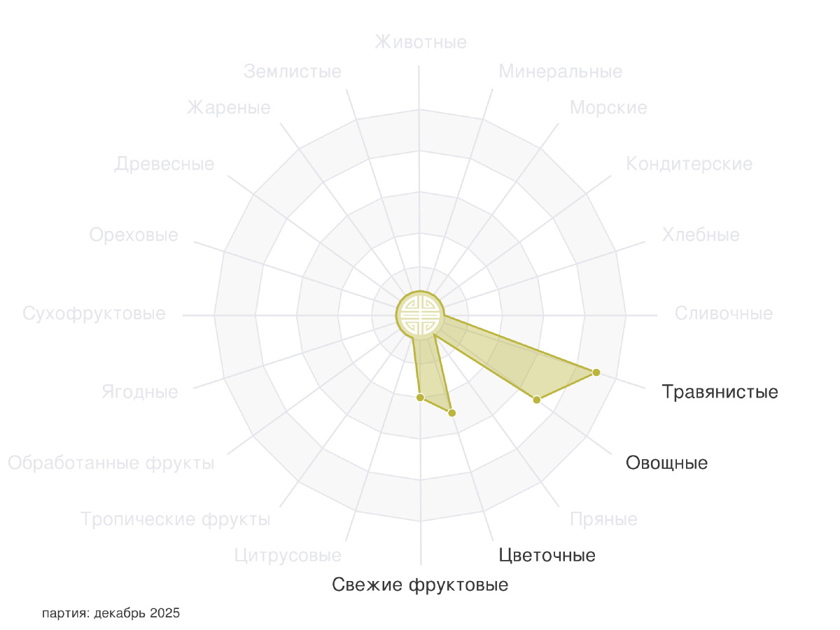 Прекрасный персиковый аромат, ванильно-грушевый, сладкая смола. Раскрылся прекрасно на третьем проливе. После третьего пролива в аромате появляется вишневое варенье. Настой плотный, ароматный с приятной терпкостью