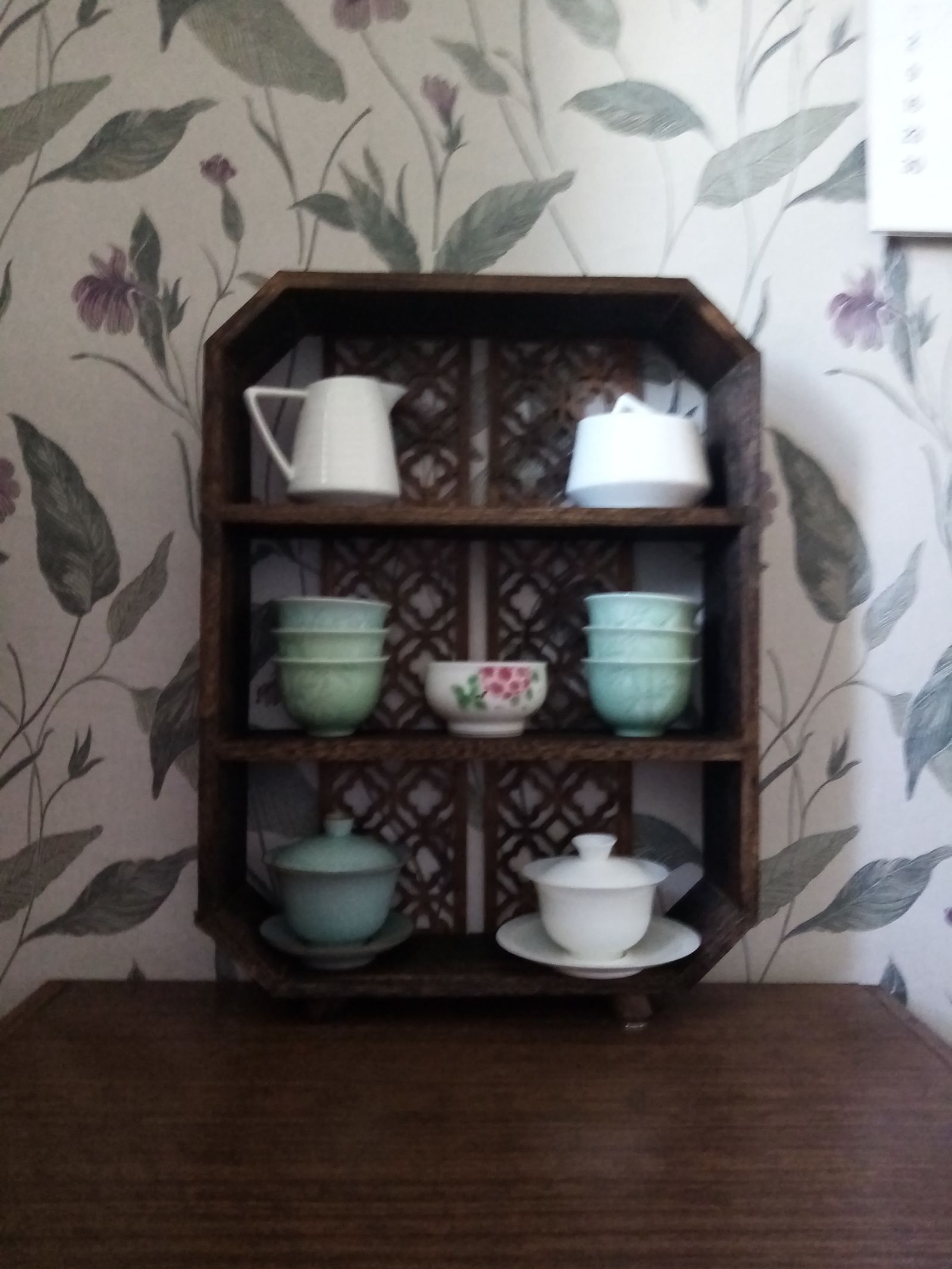Но есть досадный недостаток: одна ножка немного короче, чем другие, так что пришлось подложить под неё монетку, чтобы полочка обрела устойчивость... Но, может, это дань эстетике ваби-саби? :)