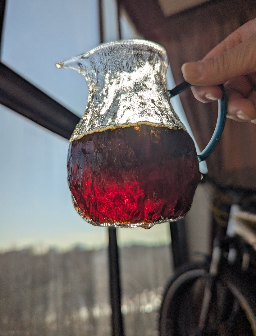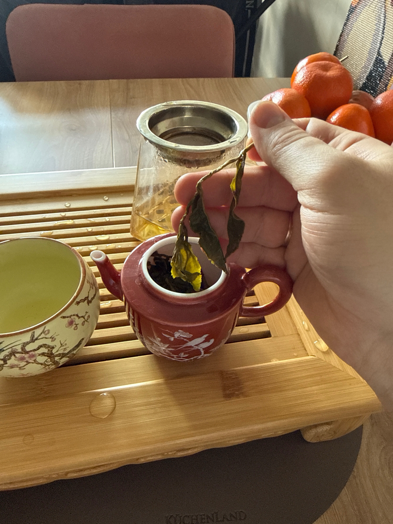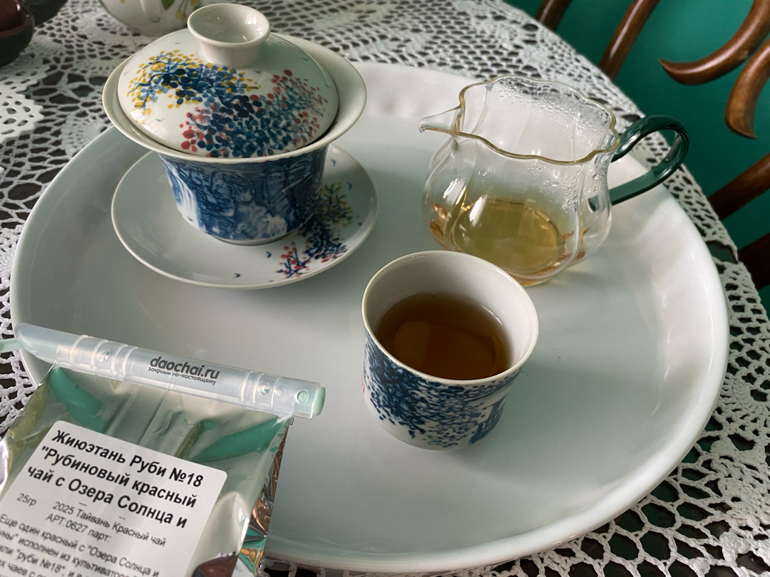 По вкусу первых проливов ловила нотки узнанования с дфмж , а ещё с красным Мэй чжань. Но что именно за вкус определить не смогла. Много свежести , липовый цвет . Вяжет немного. С дальнейшими проливами проявляется что то березовое и яблочная кислинка , яблочная косточка.