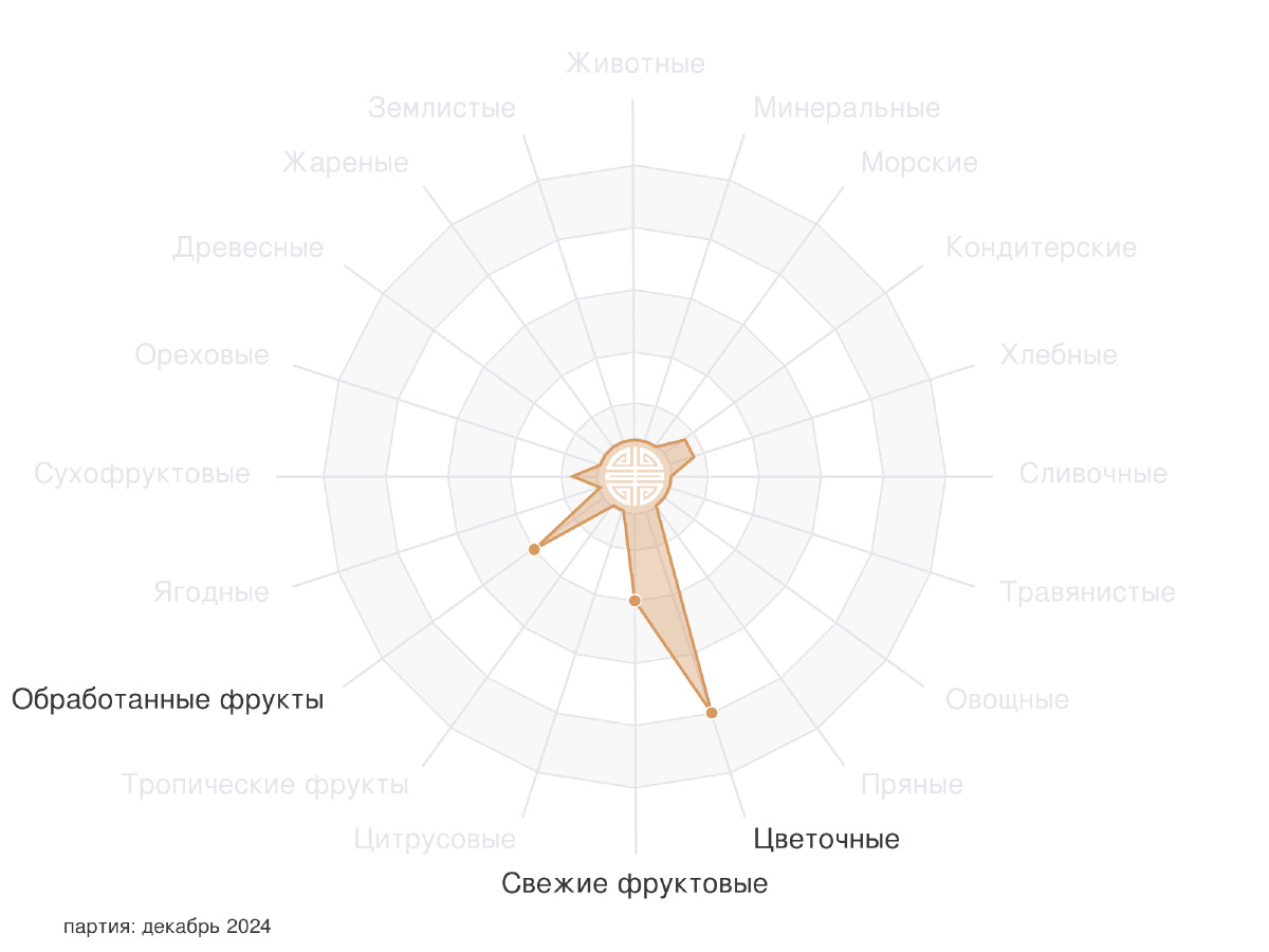 во вкусе присутствуют сушенные яблоки, цветы, мыло/шампунь, дерево, лимон, кожура апельсина.