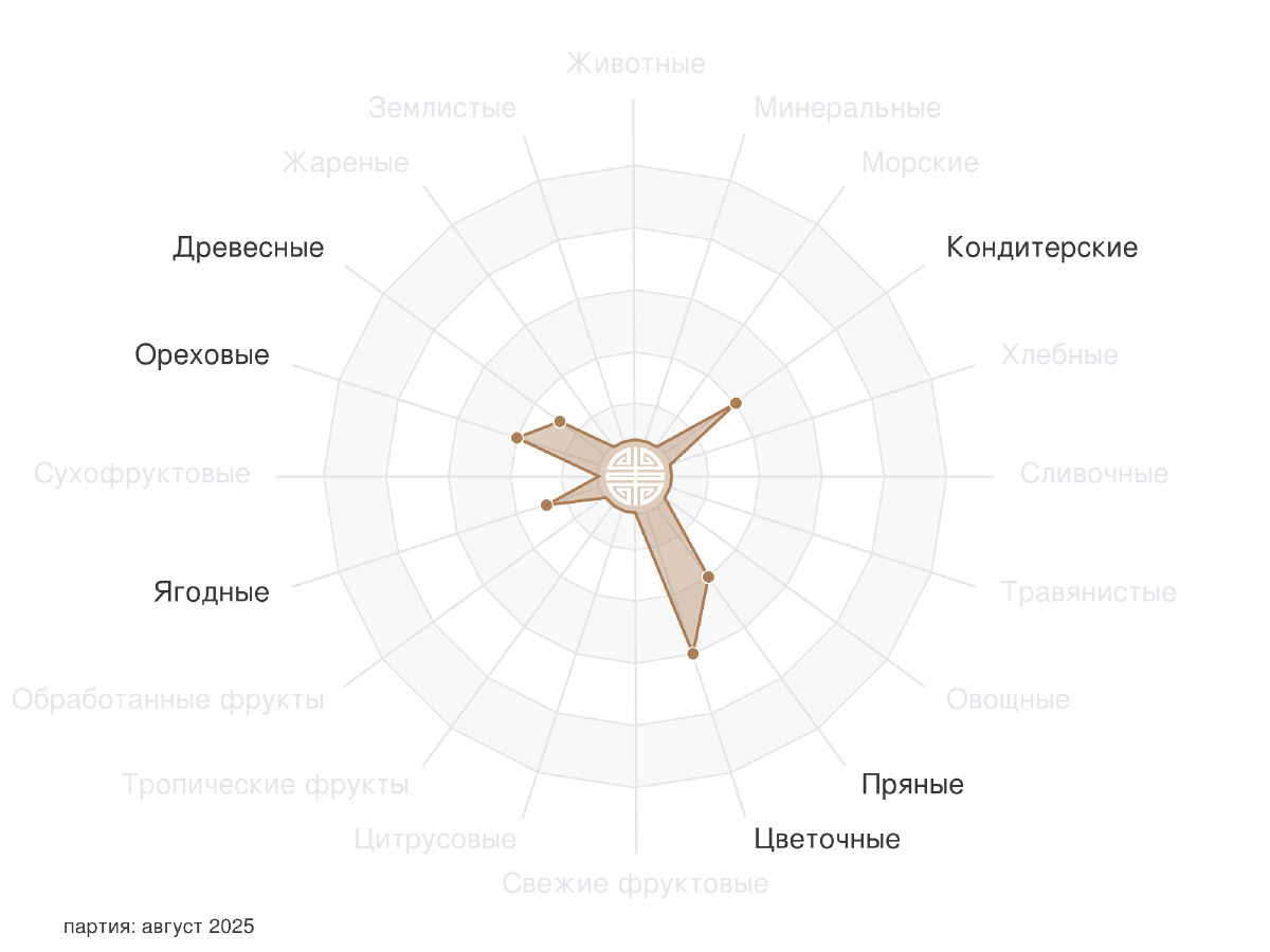 Описание полностью соответствует полученному от чая опыту. Удивил необычный копчёный оттенок в сухом листе, не вспомню, когда встречал его в шу, и встречал ли вообще. Настой обладает ярким, насыщенным ореховым вкусом, и выраженными животными нотами, гораздо более заметными, чем традиционный древесно-землянистый профиль. Если бы чай обладал чуть-чуть более выраженной сладостью - это было бы настоящее сокровище!