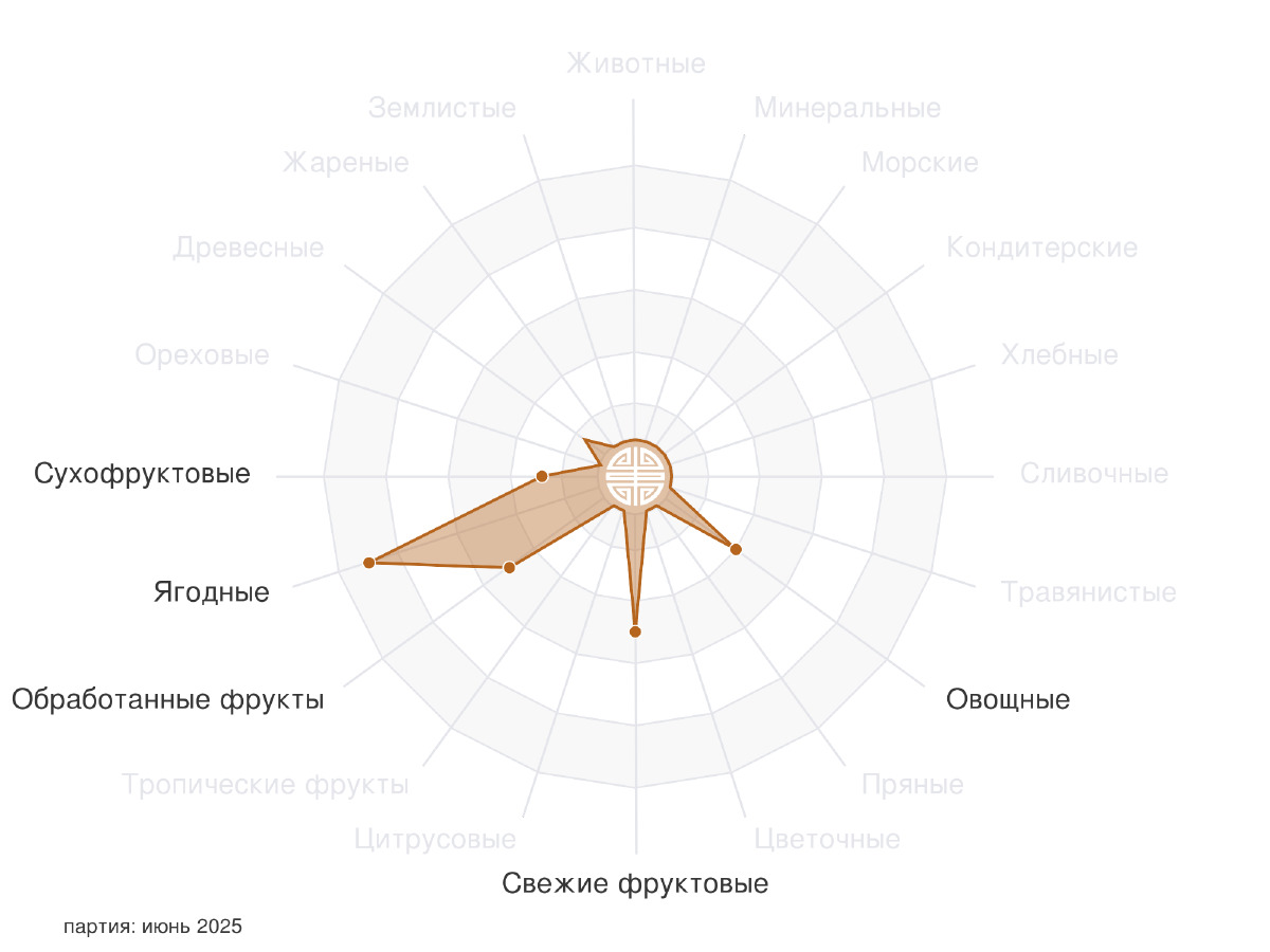 Во вкусе те же самые ягоды, немного сухофруктов, дерево и на первых проливах я почувствовал овощные нотки. Мне понравилось)