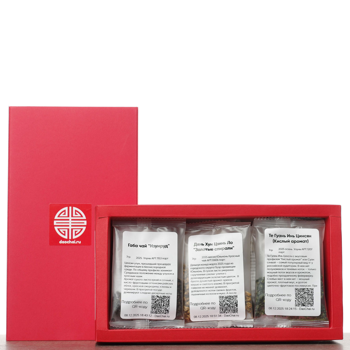 Стильная крафтовая коробка; Каждый чай упакован порционно. Выдержаны рекомендации по граммовке для заваривания классическим проливным способом. По QR коду на каждом пакетике можно перейти на чайную карточку, изучить подробное описание, рассмотреть детальные снимки и узнать, что пишут люди. Всего 12 видов непохожих друг на друга чаёв. В качестве посуды для заваривания и выдерживания проливного способа, рекомендуем рассмотреть любую из гайваней или заварочных колб.
