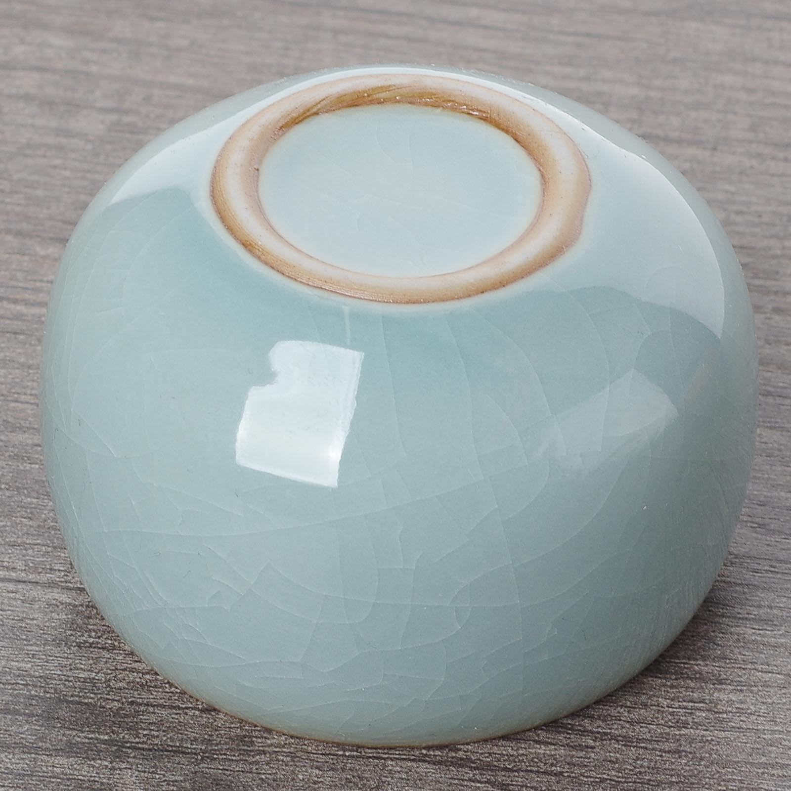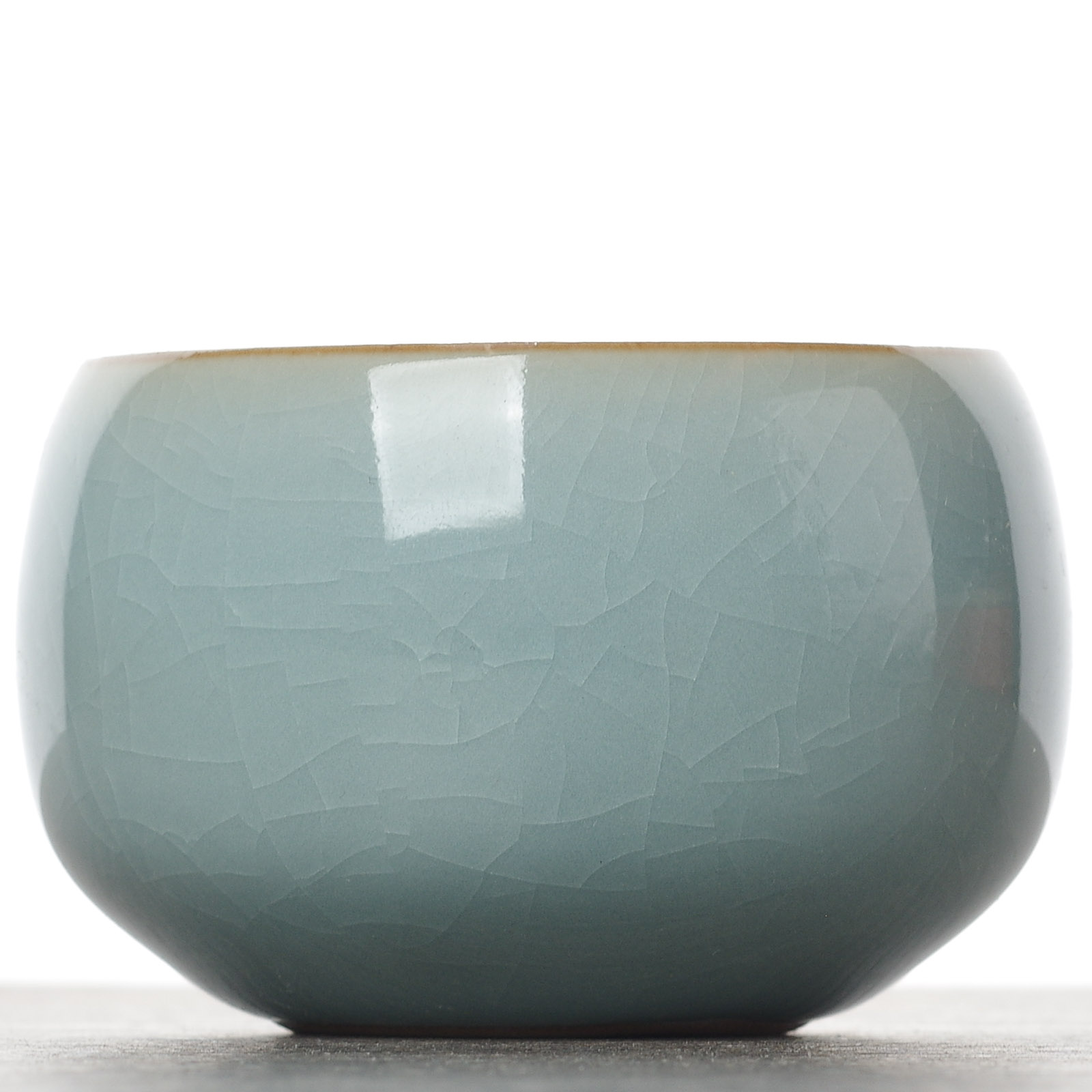 Толстостенная пиала с качественной глазурью жуяо; Особенностью керамики является открытый цек.
