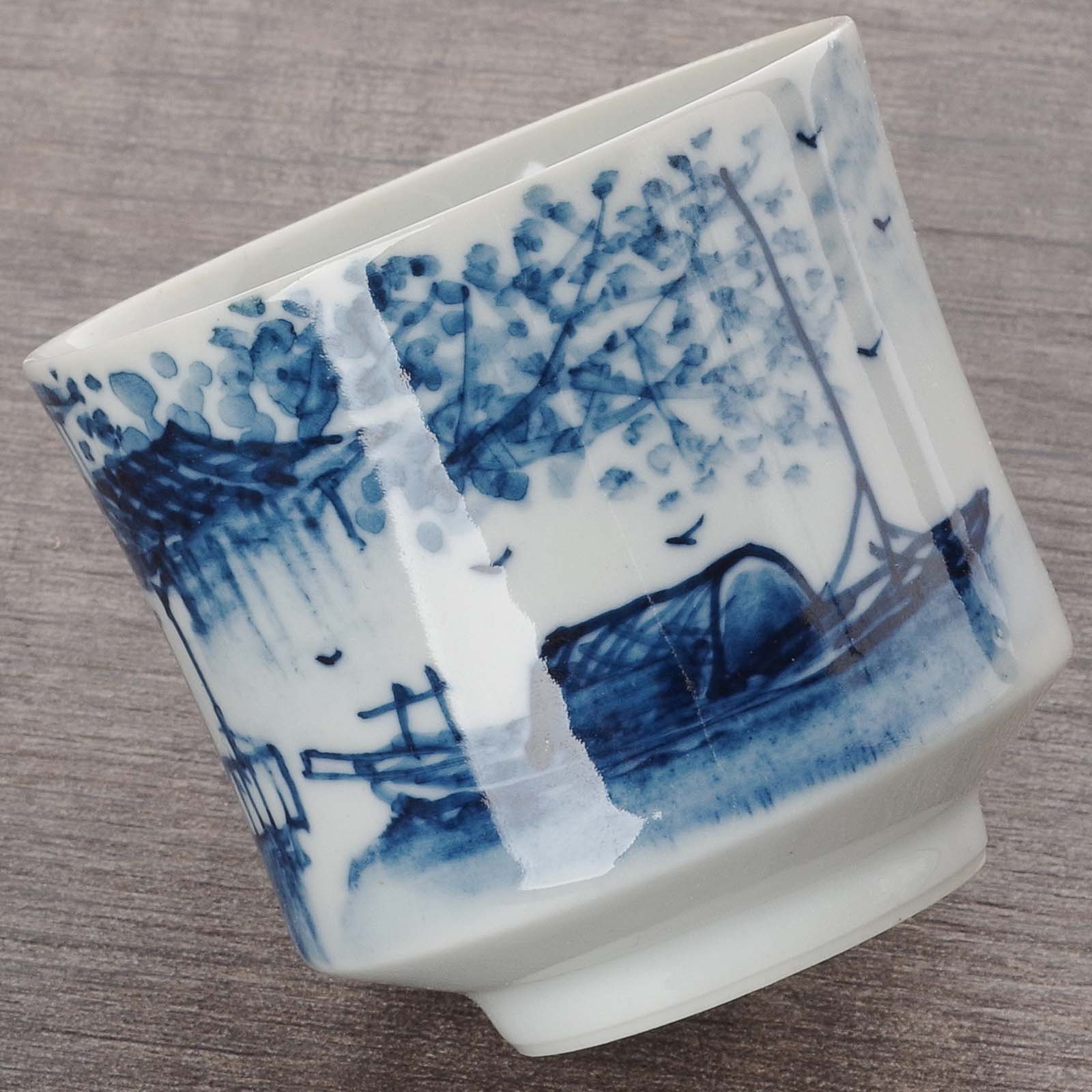 Пиала 80мл “Хижины”, цинхуа, ручная роспись (54647)