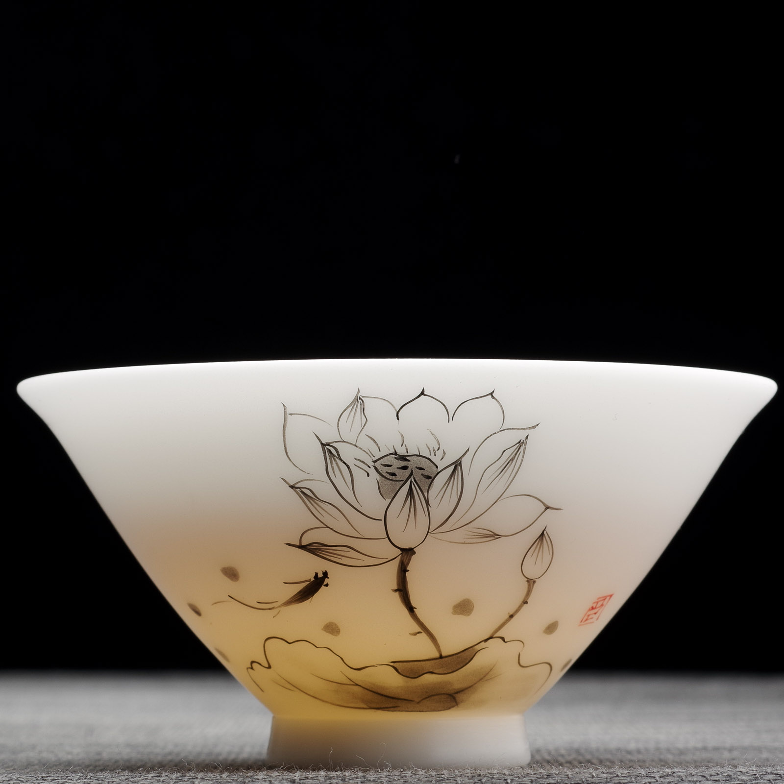 Пиала 95мл "Рыбка и лотос", сушао бинчжун фарфор (54721)
