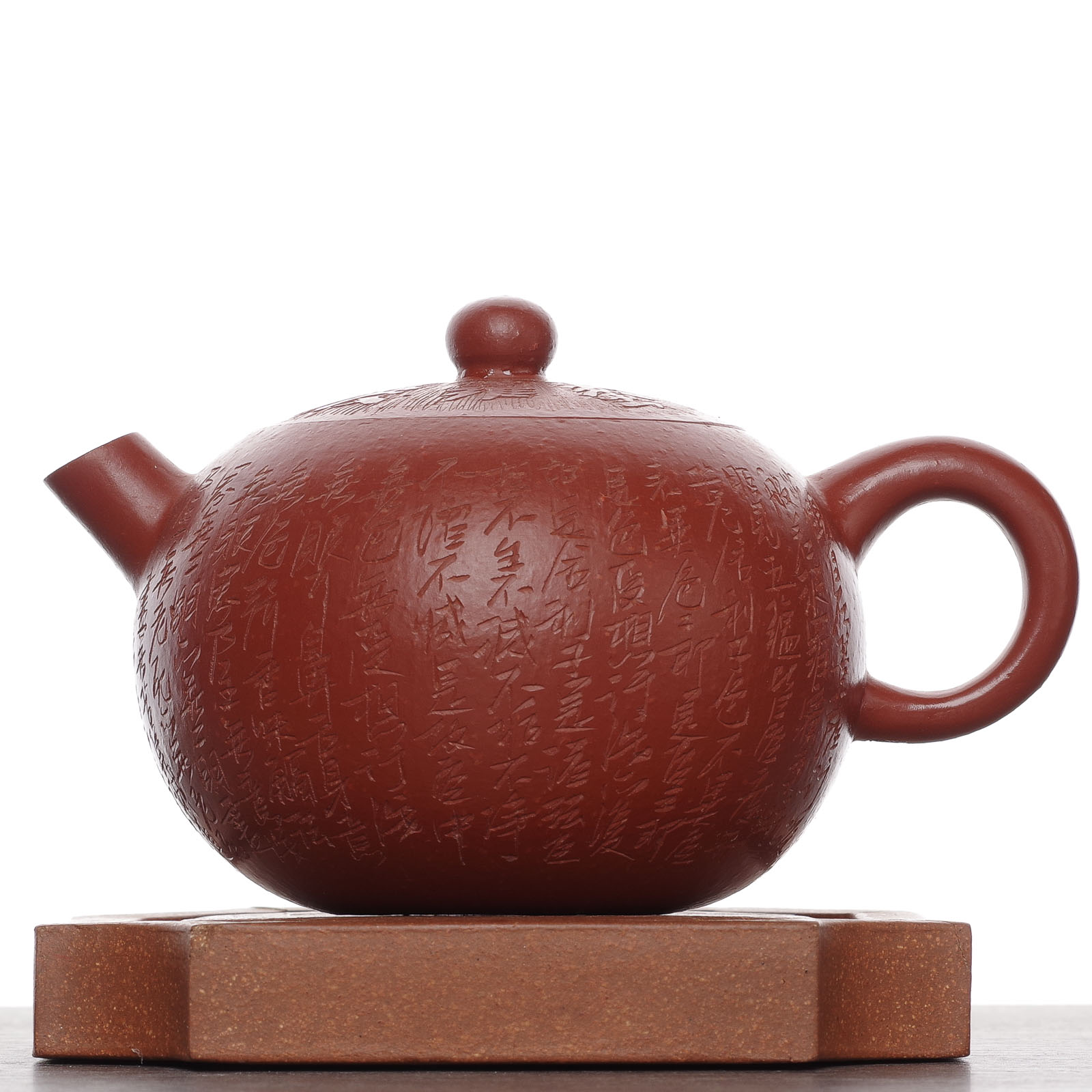 Качественная глина 龙血砂 "Кровь дракона", природный парагенезис. Невероятная фактура корки цитруса и лощеный блеск поверхности уже у нового чайника. Плотная и звонкая; Проработка слива, тонкость элементов чайника;