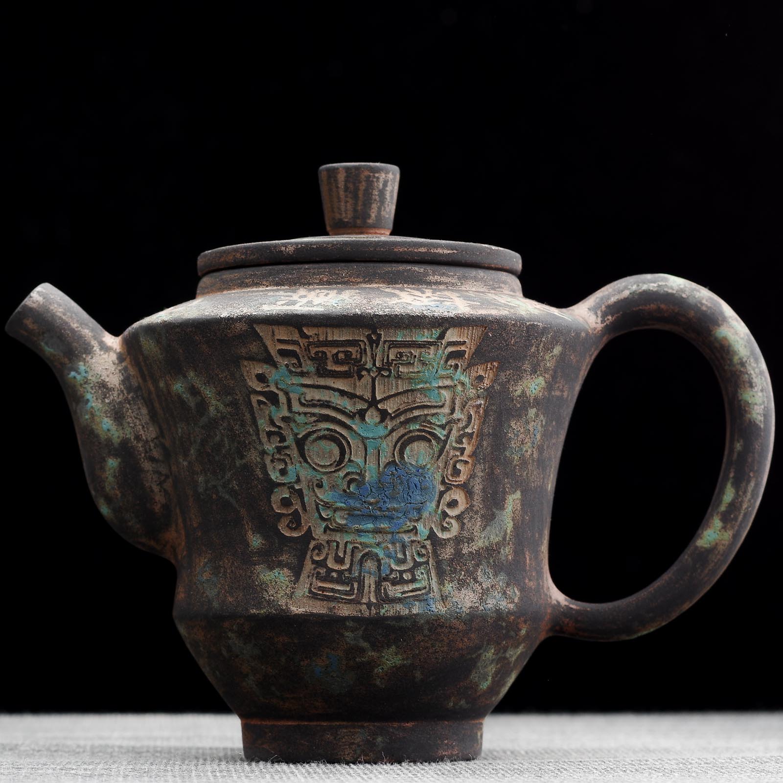 Чайник 185мл "Бронзовые маски", цзяньшуйская керамика, мастер Гу Цзингуан (791448)