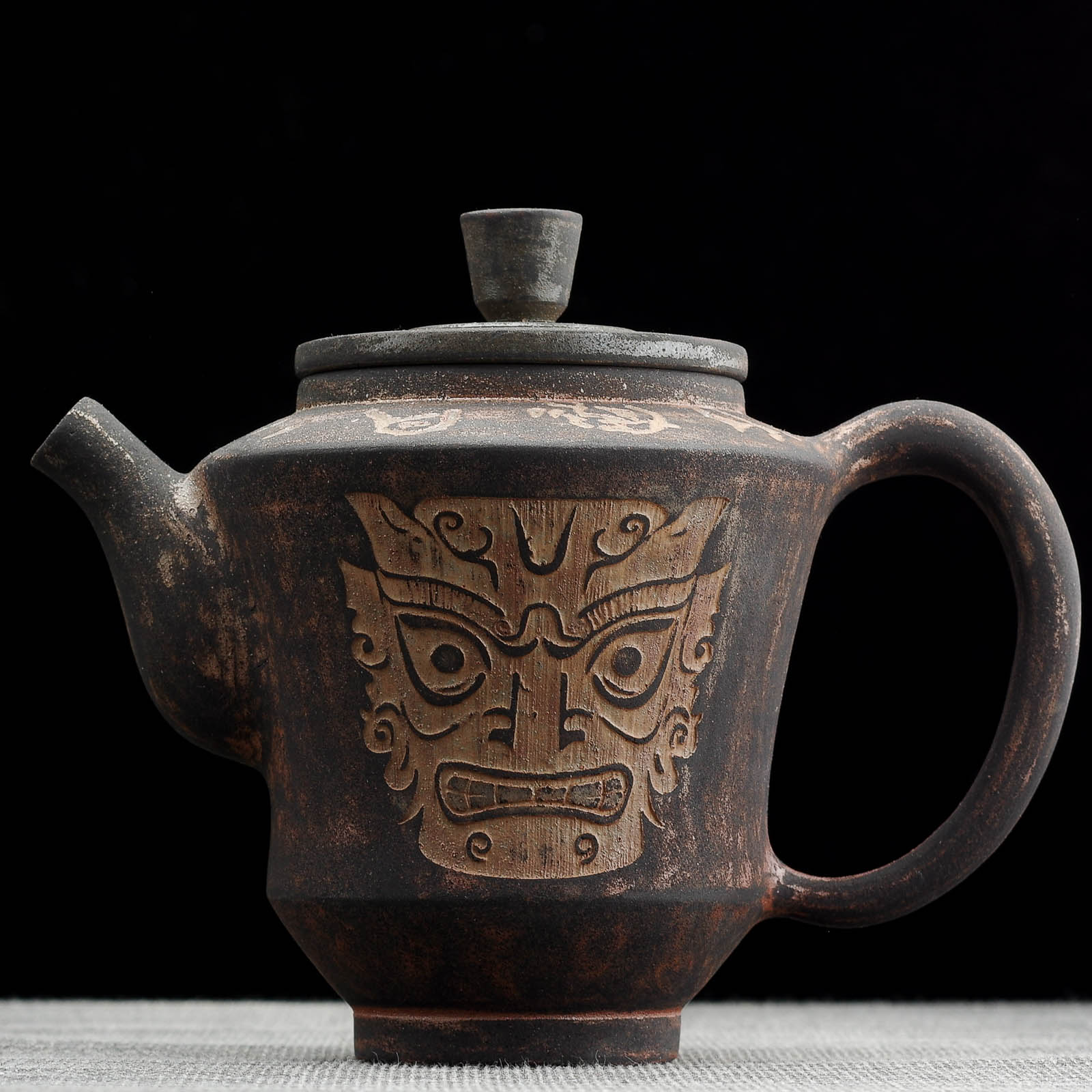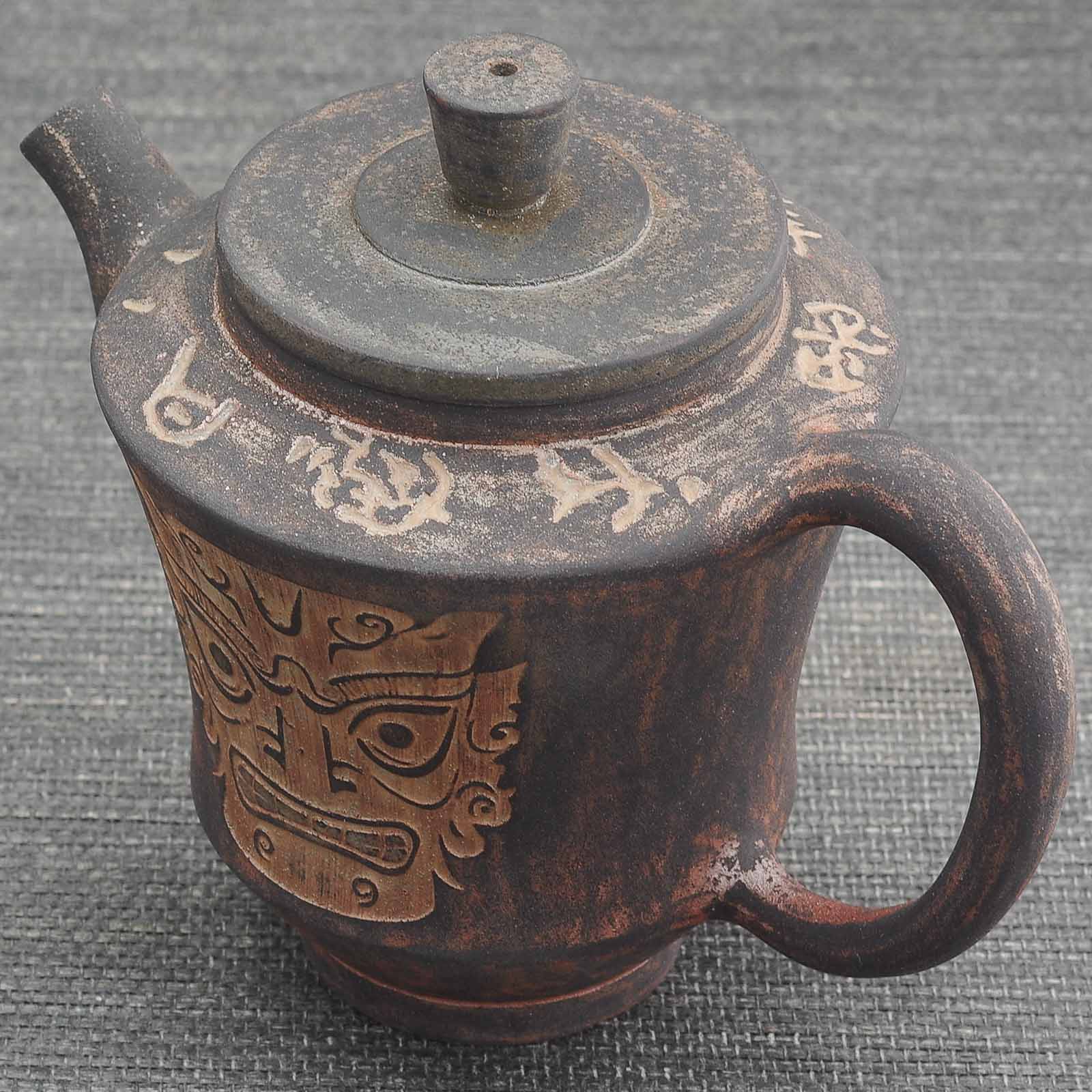 Чайник 200мл "Бронзовые маски", цзяньшуйская керамика, мастер Гу Цзингуан (791446)