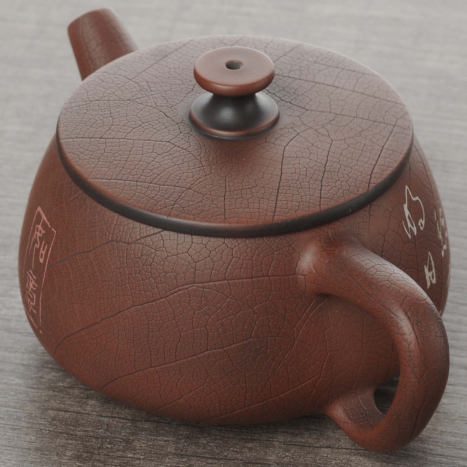 Фактура листа на чайнике достигается путём отпечатка листа;