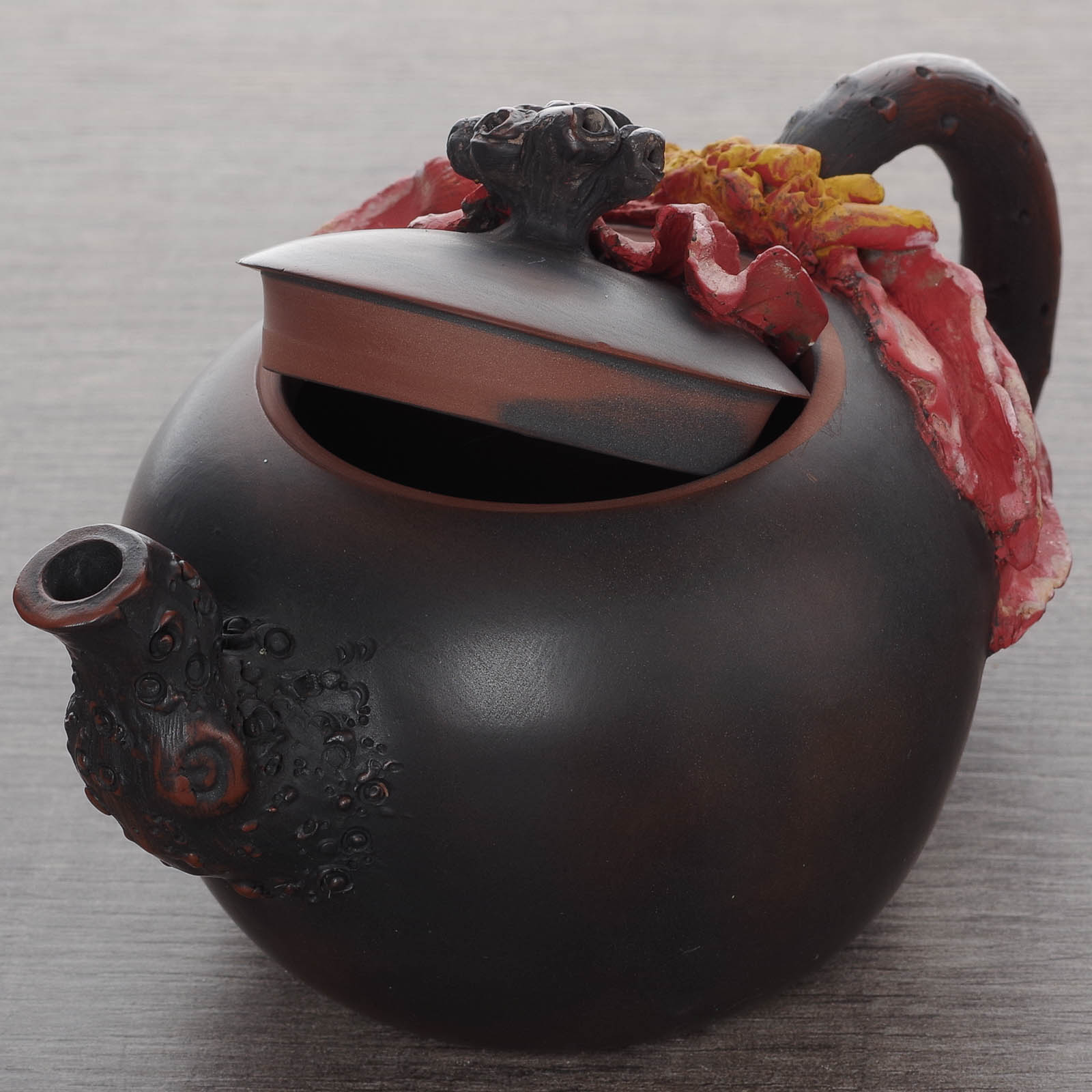 Мастер 玉玉兰花 Юй Ланьхуа. Эта женщина делает гиперреалистичные чайники гунчуни, вдохновляясь красотой юньнанской природы. Она украшает свои чайники фотореалистичными цветами, веточками, плодами фруктов и так далее. Особенность её чайников - невероятный объем;