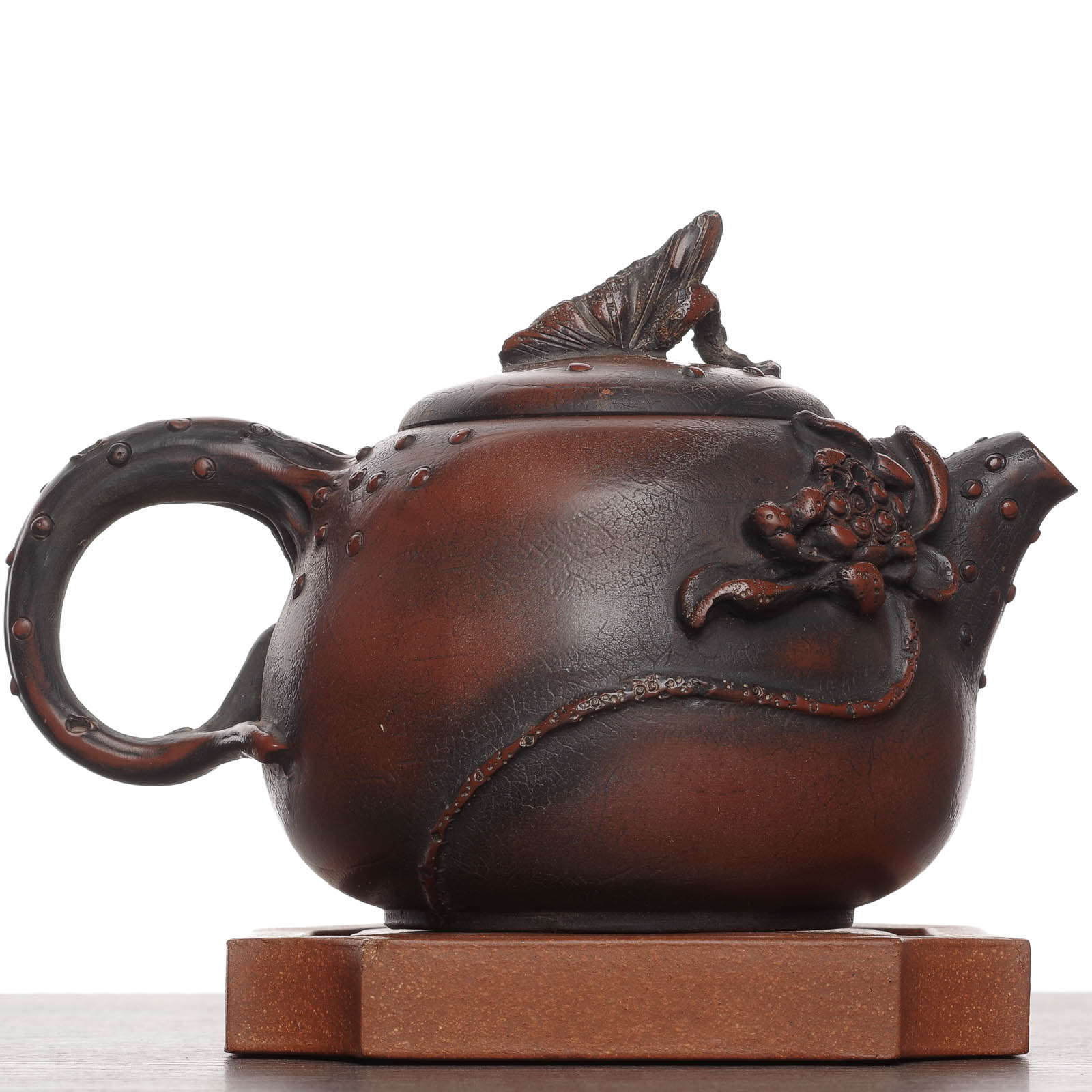 Поверхность чайника имитирует фактуру листа;