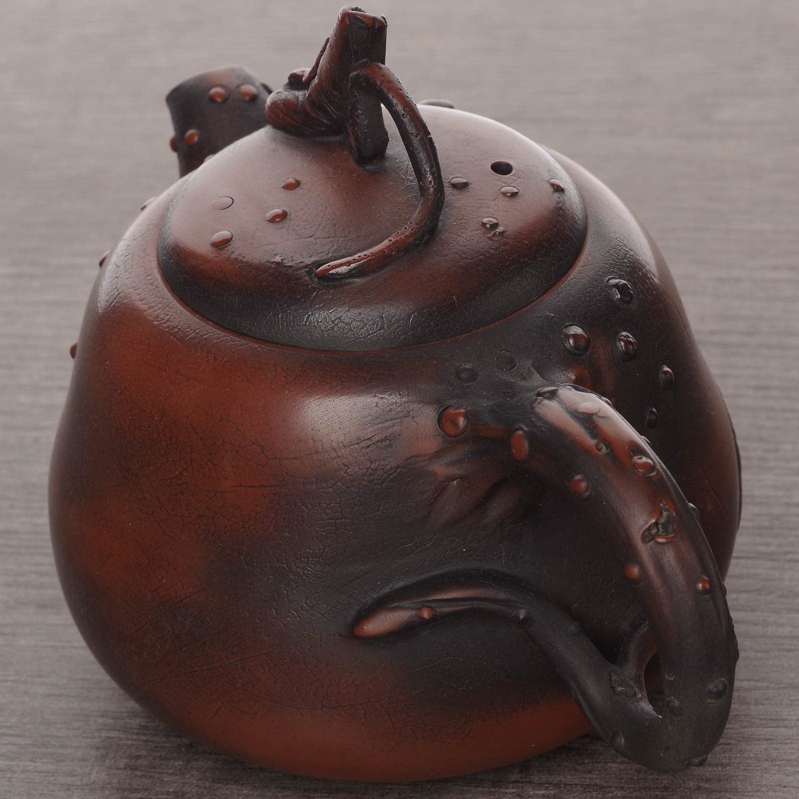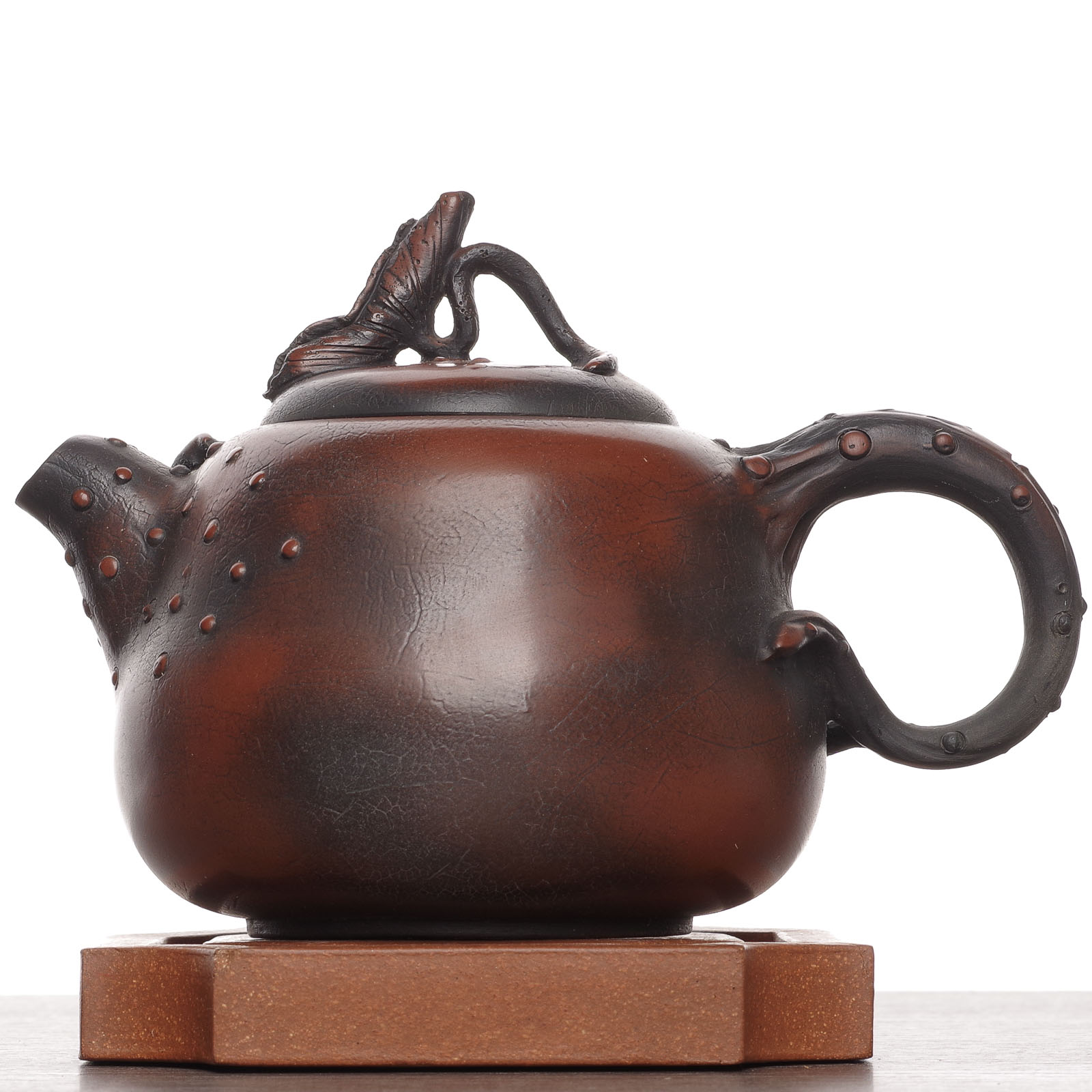 Поверхность чайника имитирует фактуру листа;