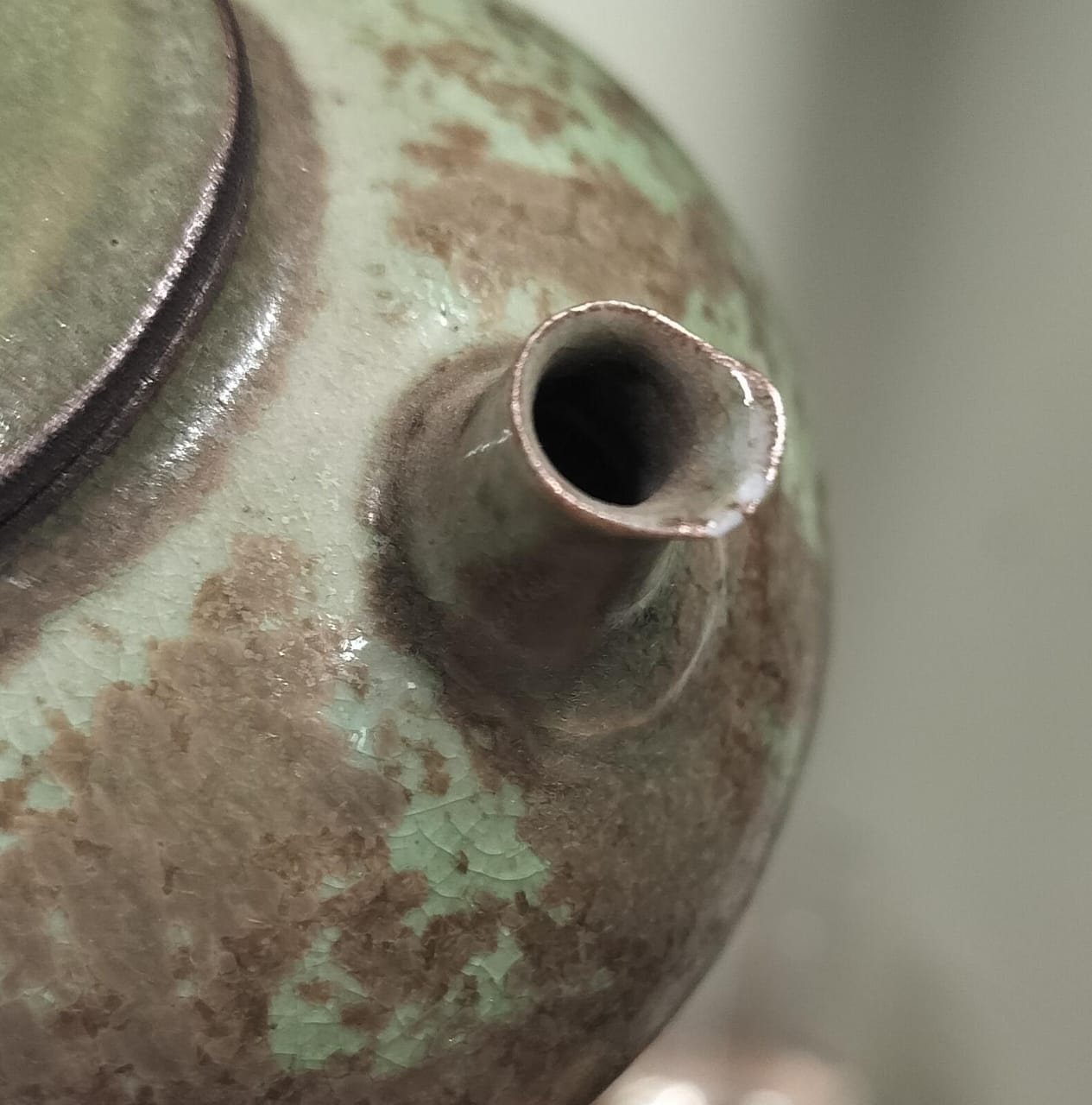 Керамическое исполнение. Сделан цзиндэчжэньскими керамистами. Обладает хорошей эргономикой: хорошей посадкой крышки и ситом-гнездом, делающий заваривание чая комфортным;