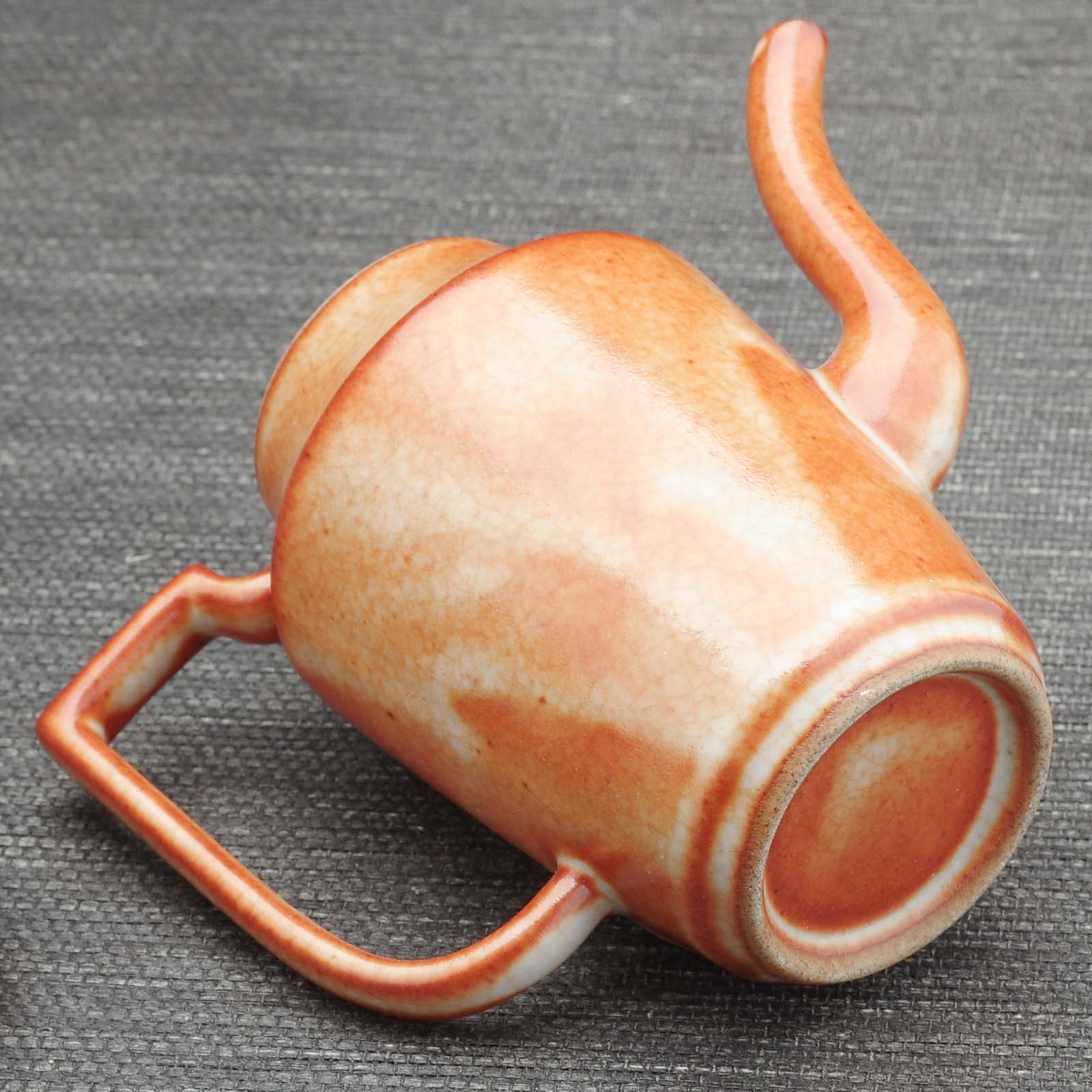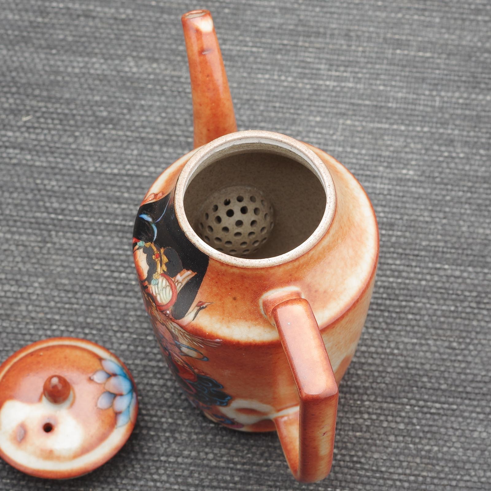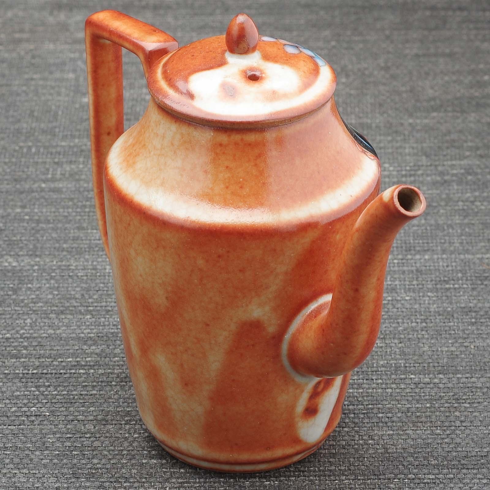 Керамическое исполнение. Сделан цзиндэчжэньскими керамистами. Обладает хорошей эргономикой: хорошей посадкой крышки и ситом-гнездом, делающий заваривание;