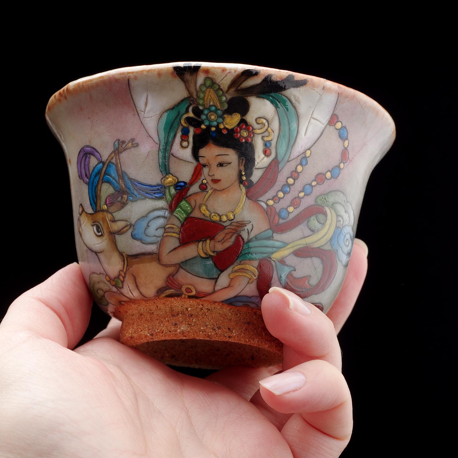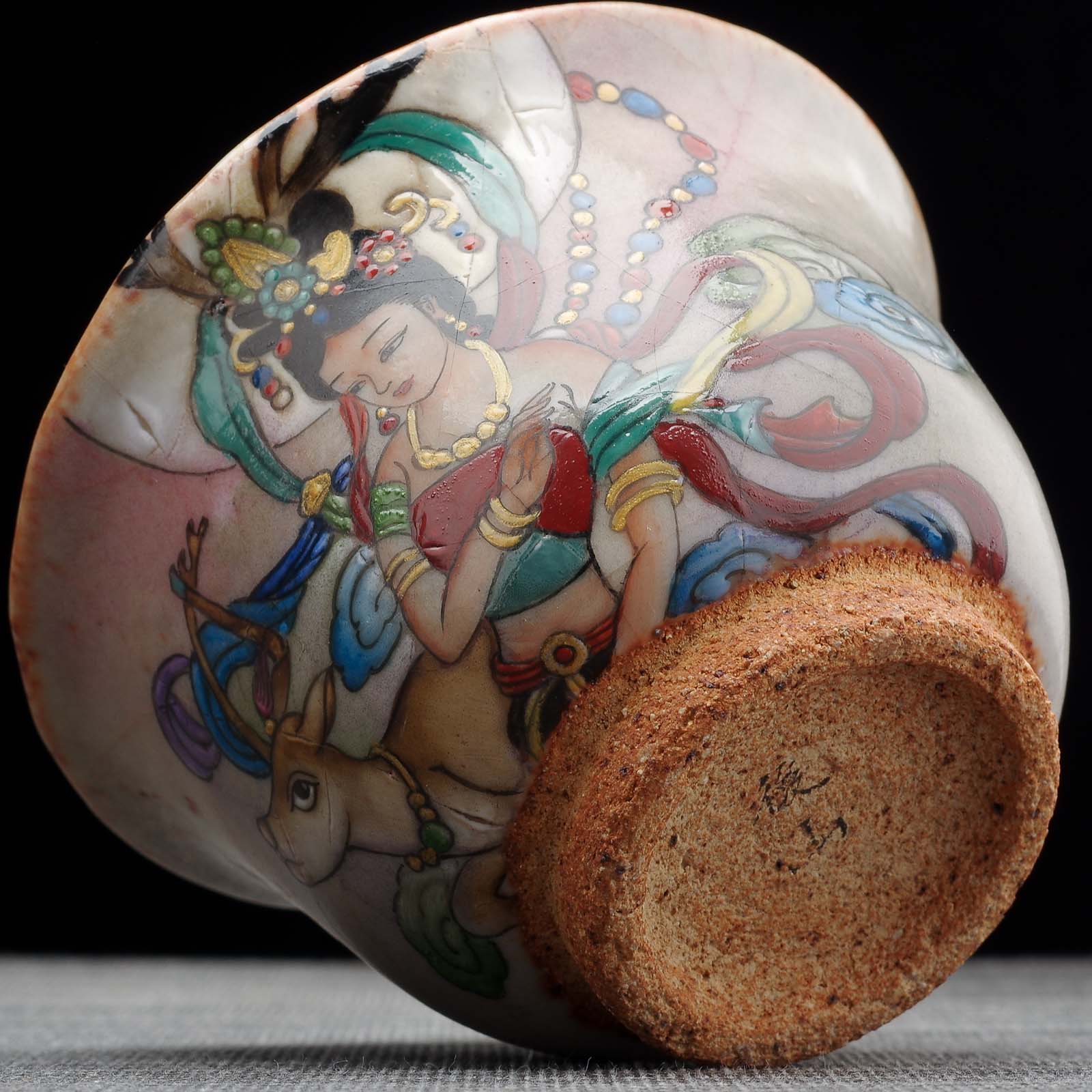 Сюжет: Апсарас. "飞天" (Fēitiān) в китайском искусстве и буддийской иконографии относится к апсарасам, которые являются небесными или божественными существами, часто изображаемыми как летающие или танцующие. Они происходят из древнеиндийской мифологии и были адаптированы в буддийскую иконографию, став частью широкого пантеона буддийских символов и фигур.