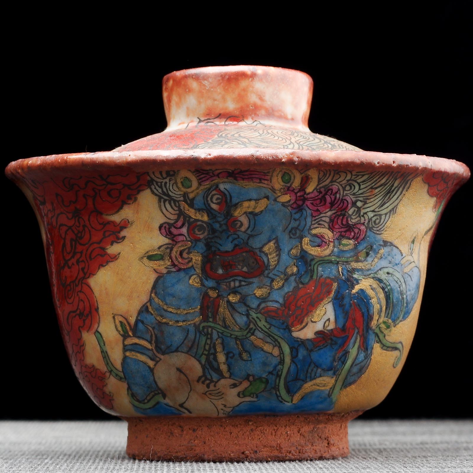 В качестве основы черепка используется материал 匣钵泥 Сябони, это огнеупорная глина, выдерживающая температруры почти 1600 градусов. В процессе обжига в дровяной печи изделия окрашиваются в различные оттенки красного, переливаются бурым или коричневым блеском, это является их уникальной характеристикой. Сгорая, древесина превращается в золу. Покрываясь естественной пепельной глазурью керамика становится гладкой и блестящей. Грубый в основе материал формирует сложную губчатую текстуру на ествественной глазури. мастера могут проводить вторичный обжиг уже с нанесенной глазурью.