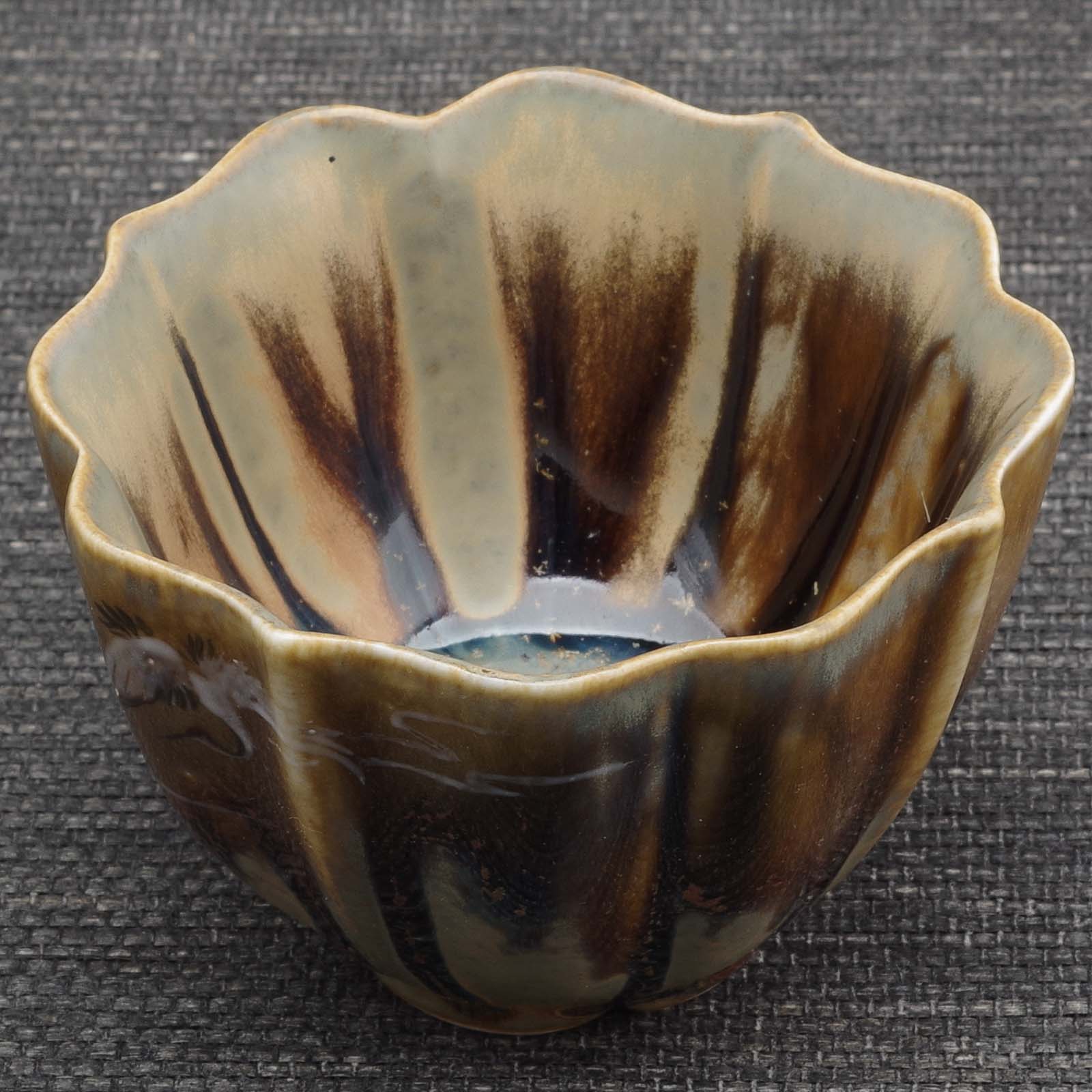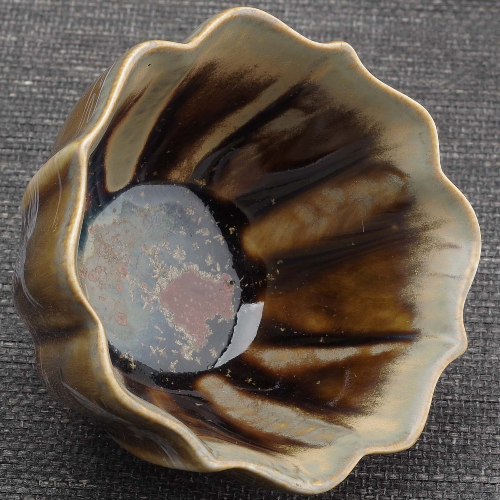 Пиала в форме цветка с рельефной внешней поверхностью;