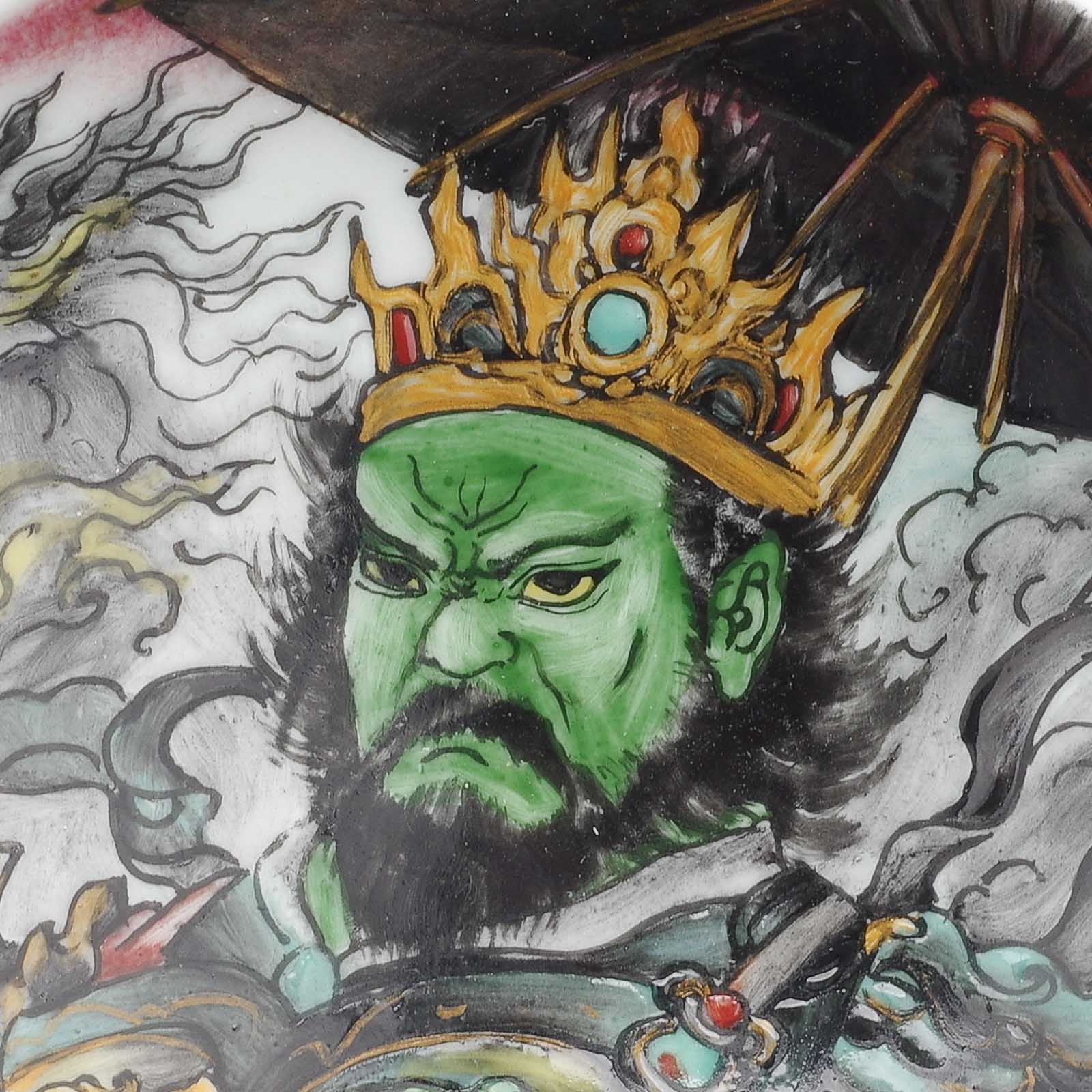 Сюжет: Дуовэн (многознающий) — один из четырёх Небесных царей-хранителей сторон света в буддизме, покровитель севера. В китайской традиции его часто отождествляют с полководцем Ли Цзином, держащим пагоду, а в японской он почитается как один из семи богов удачи под именем Бисямонтэн.