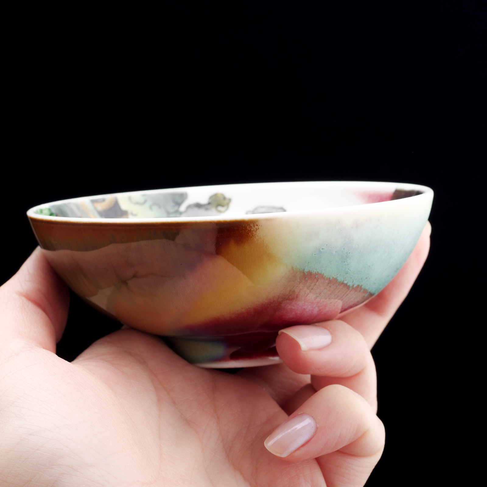 Многослойные цветные глазури создают неповторимый рисунок, который служит фоном для будущего сюжета;