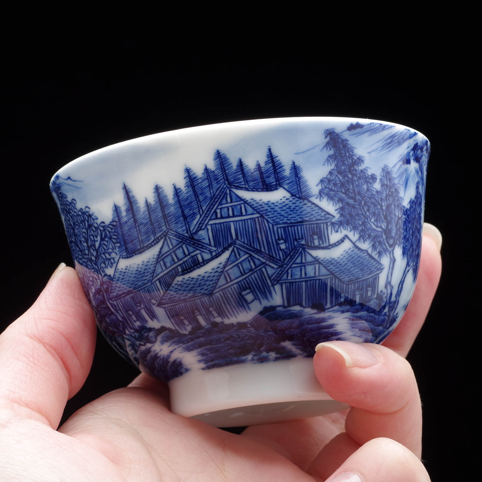 Пиала 125мл "Деревня", роспись цинхуа, фарфор из Цзиндечжень (403564)