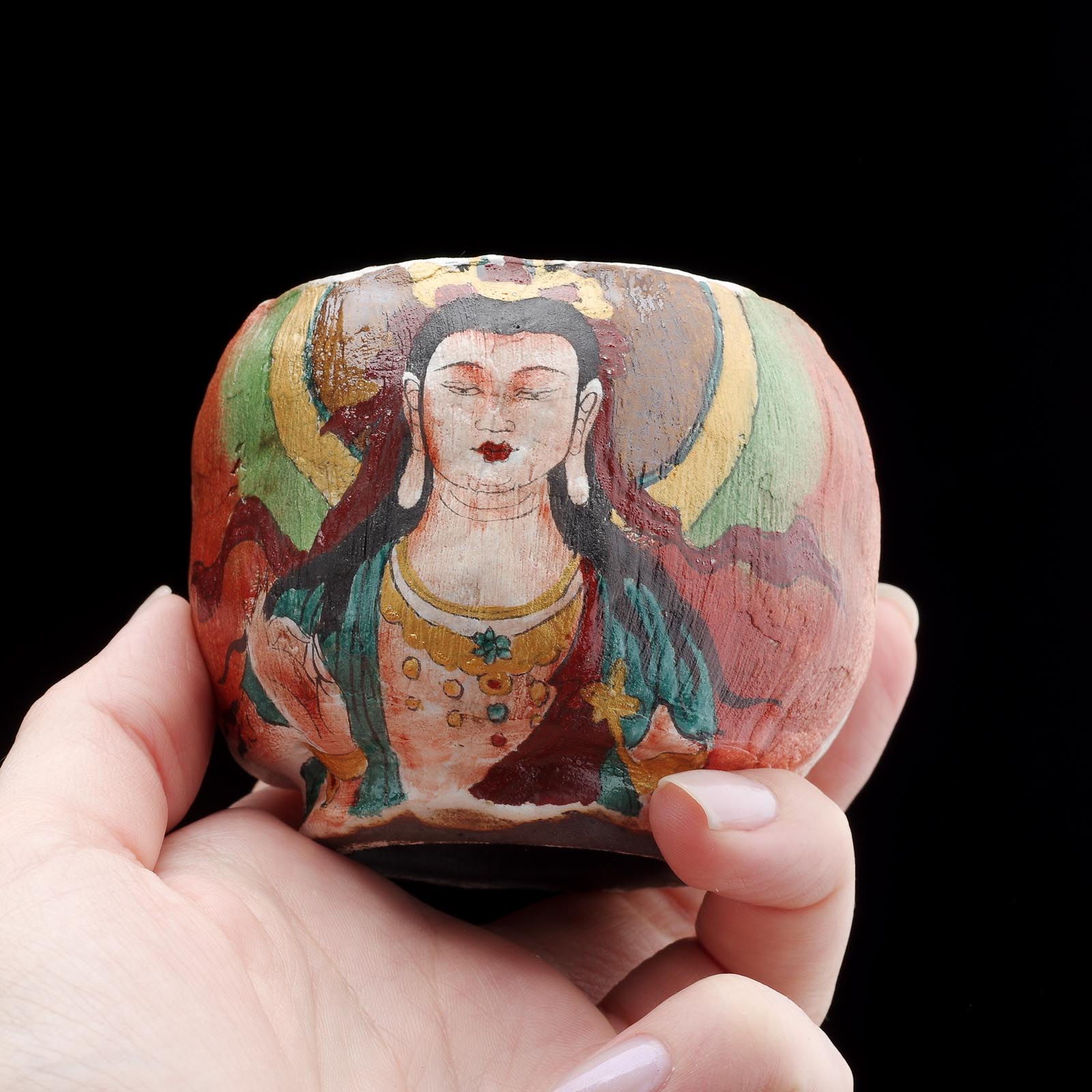 Сюжет: Ручная многоцветная роспись богиня Милосердия Гуаньинь так же почитаема в Китае, как Дамо и Будда.