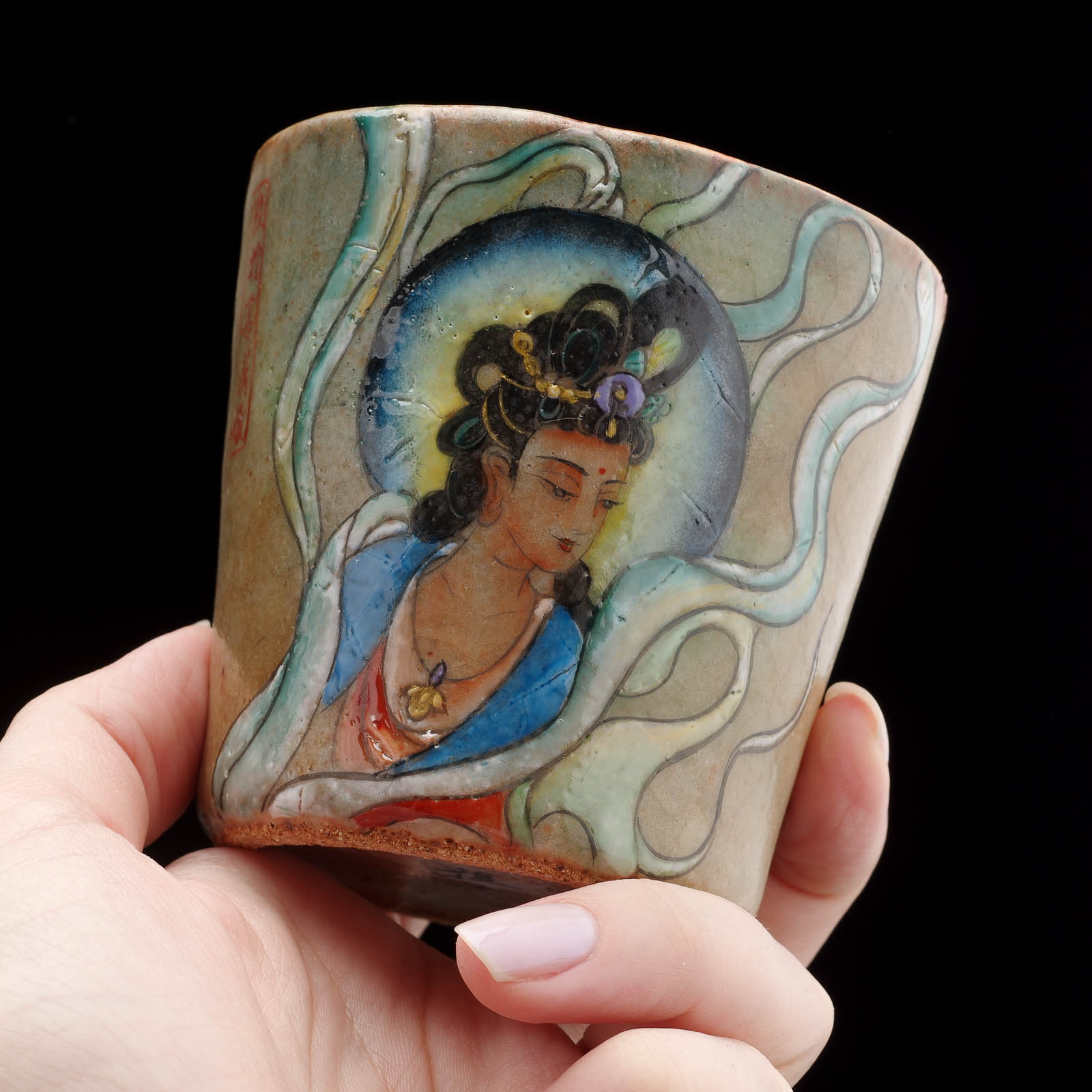 Сюжет: Ручная многоцветная роспись богиня Милосердия Гуаньинь так же почитаема в Китае, как Дамо и Будда.