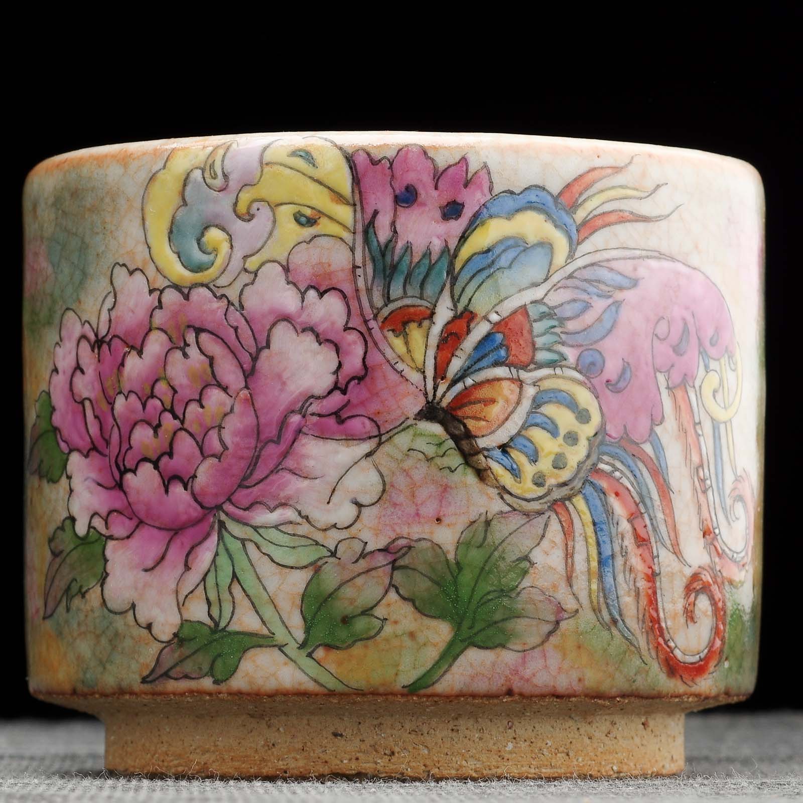Пиала 200мл "Бабочка и пион", керамика из Цзиндечжень (404845)