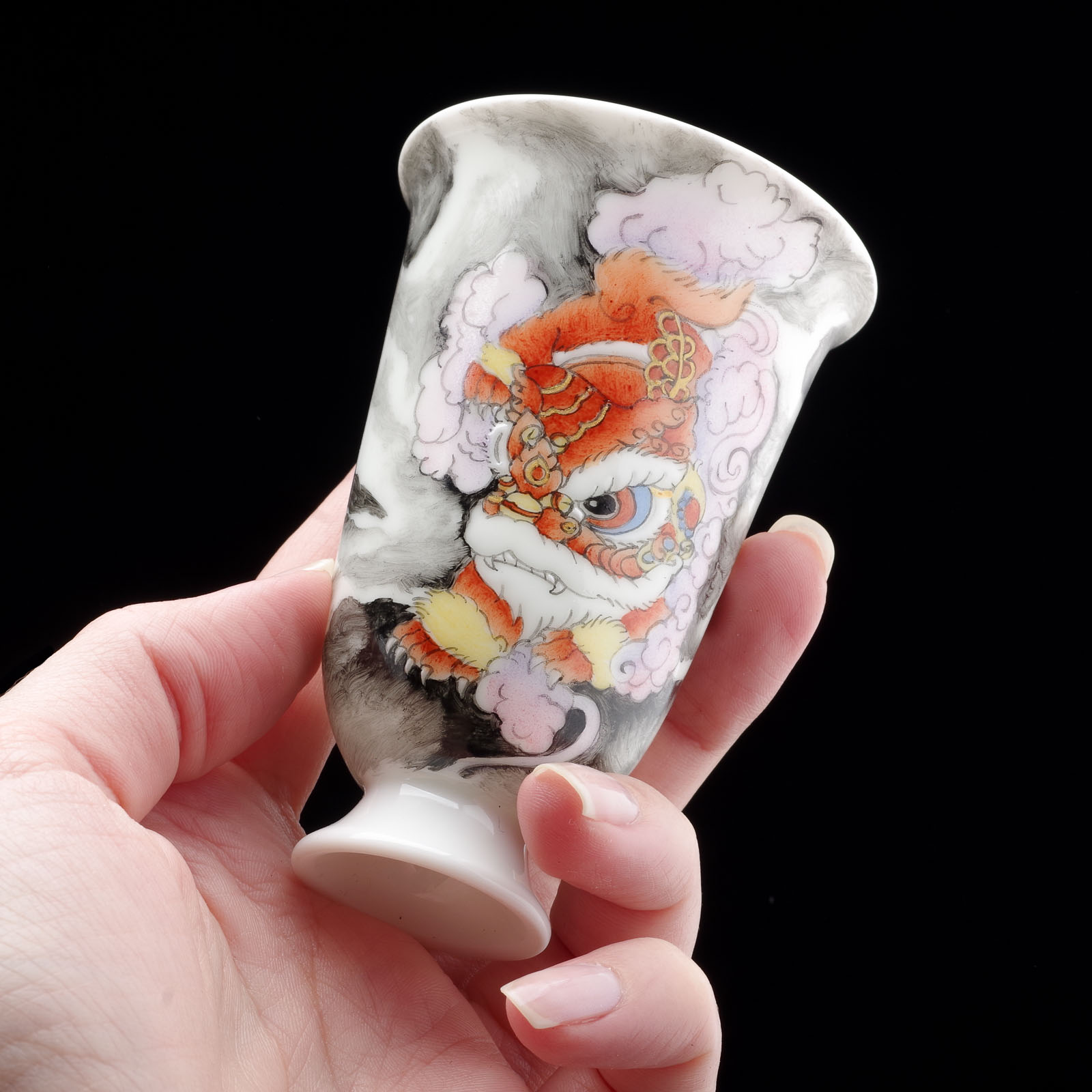 Пиала 85мл "Танцующий лев", фарфор из Цзиндечжень (404572)