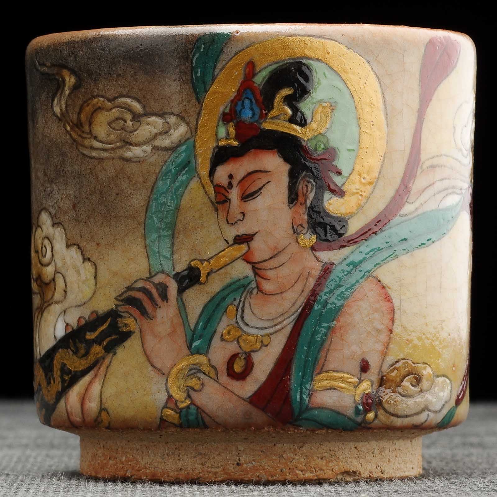 Сюжет: Апсарас или фэйтянь. Да, 飞天 (Fēitiān) — это китайский аналог апсар (apsaras) из индийской мифологии. Эти небесные существа были заимствованы китайским буддизмом и адаптированы к местной культуре, став символами красоты, грации и духовного вдохновения. В китайском искусстве они часто изображаются как летающие фигуры с развевающимися лентами и облачениями, танцующие или играющие на музыкальных инструментах, символизируя небесное благословение и радость.