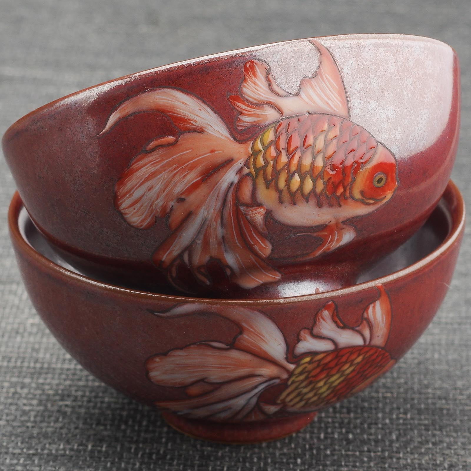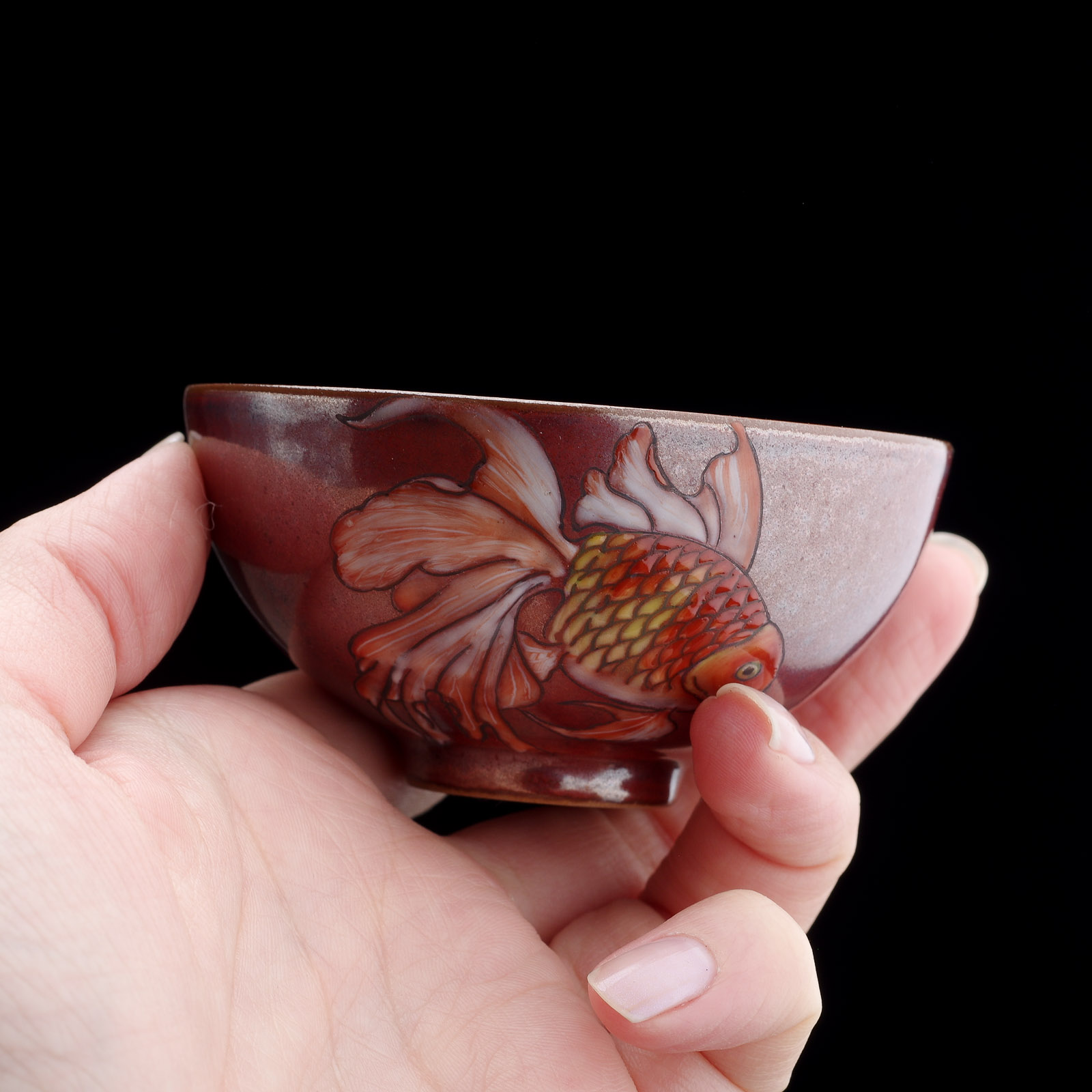 Пиала 95мл "Золотая рыбка", керамика из Цзиндечжень (404750)