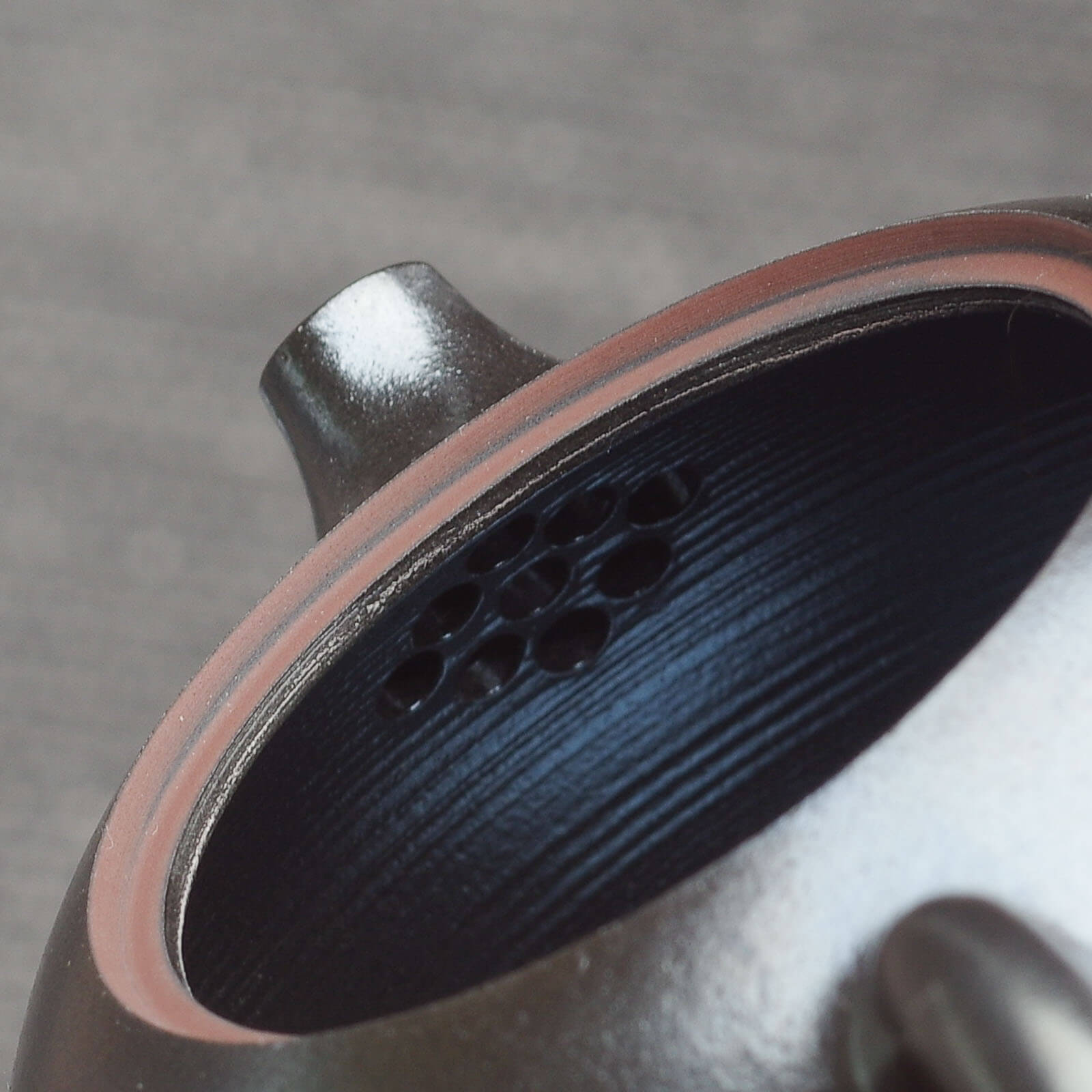 Изделия помещают в герметичную камеру, полностью засыпанную чистым древесным углём, затем нагревают до 1100-1200°C и подвергают очень медленному охлаждению. Именно в этот момент перенасыщенные минералы — железо, алюмосиликаты и другие природные компоненты глины — начинают собираться, расти и формировать кристаллы. Такой процесс невозможно подделать: каждый сосуд получает неповторимую “рожденную огнём” поверхность, словно металлическое свечение, древний патинированный блеск или «радужное свечение», которые появляются после некоторого времени использования.