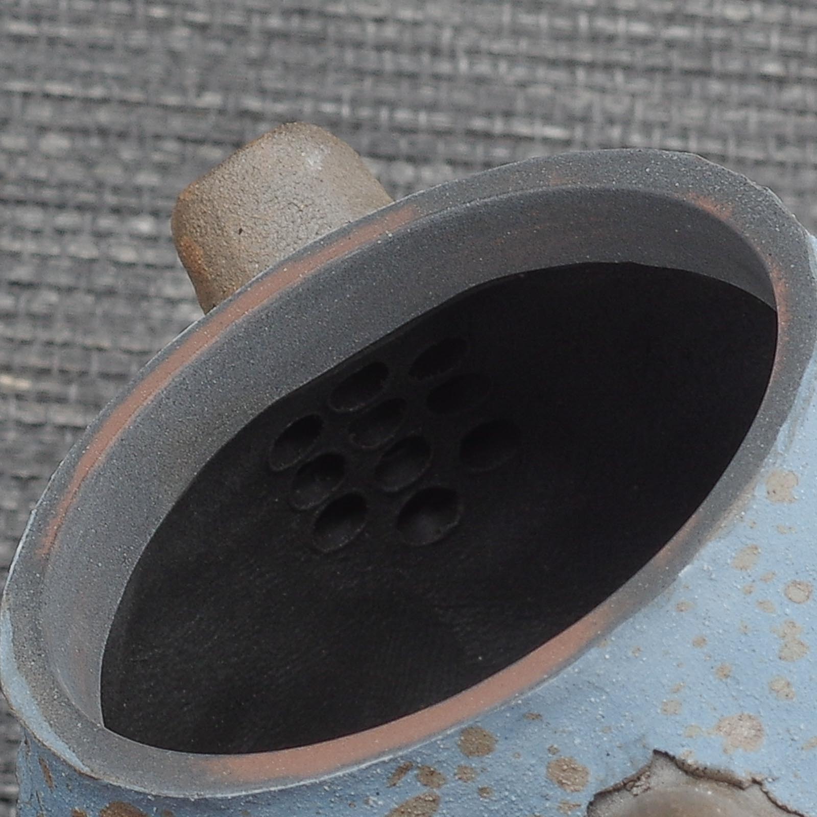 Работа от эксцентричного мастера Ли Шикэ, не стремящегося копировать популярные на рынке стили. Он рушит стереотипы о форме и сути циньчжоуской керамики, создавая новые вехи для керамистов. Практически каждая работа мастера сейчас делается на заказ для коллекционеров и ценителей керамики. Известен своими работами в стимпанк стиле, занимающими места на соревнованиях национального уровня. Увлекается дровяным обжигом. И не имеет штата сотрудников и учеников. Каждая работа с его клеймом выполняется им самостоятельно.