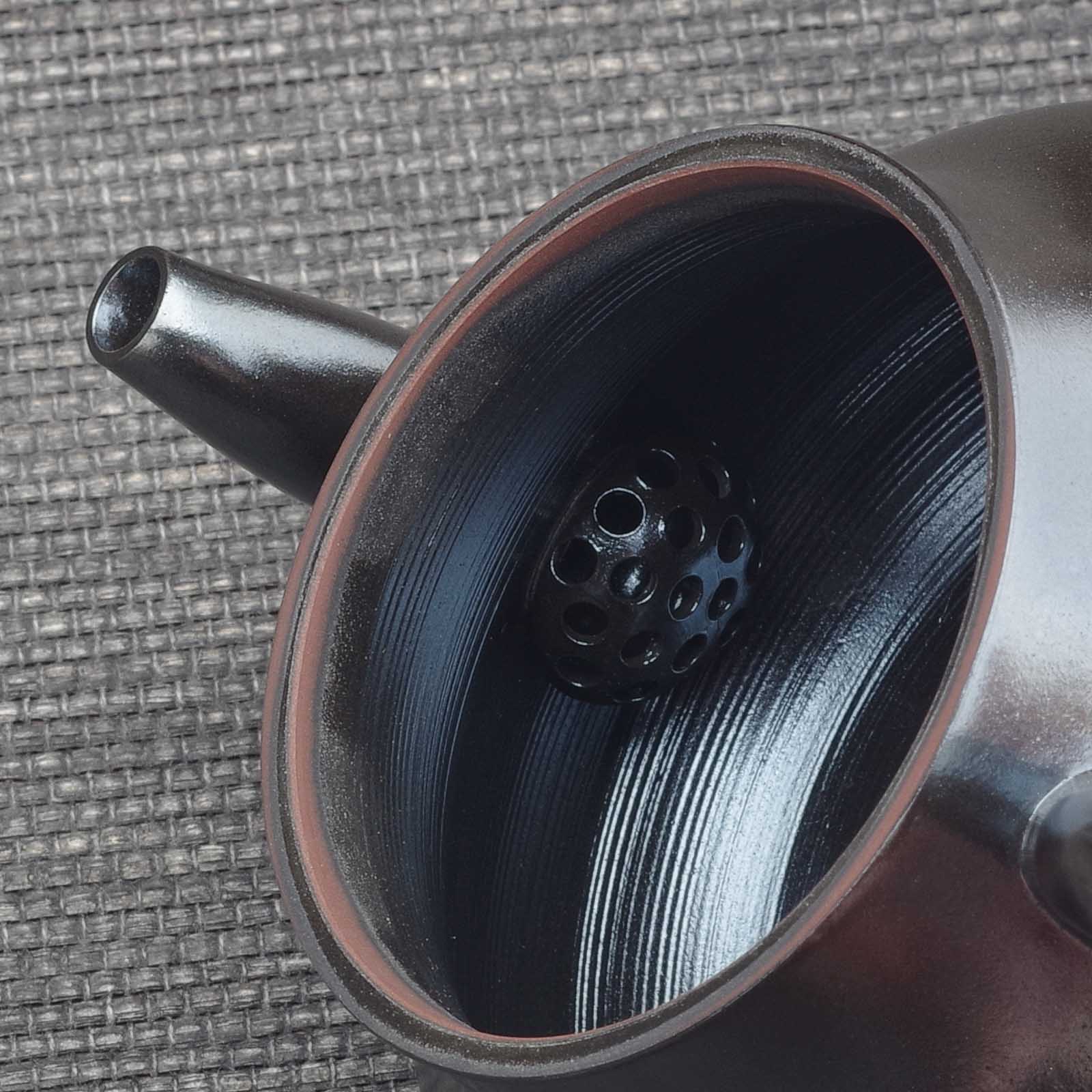 Изделия помещают в герметичную камеру, полностью засыпанную чистым древесным углём, затем нагревают до 1100-1200°C и подвергают очень медленному охлаждению. Именно в этот момент перенасыщенные минералы — железо, алюмосиликаты и другие природные компоненты глины — начинают собираться, расти и формировать кристаллы. Такой процесс невозможно подделать: каждый сосуд получает неповторимую “рожденную огнём” поверхность, словно металлическое свечение, древний патинированный блеск или «радужное свечение», которые появляются после некоторого времени использования.