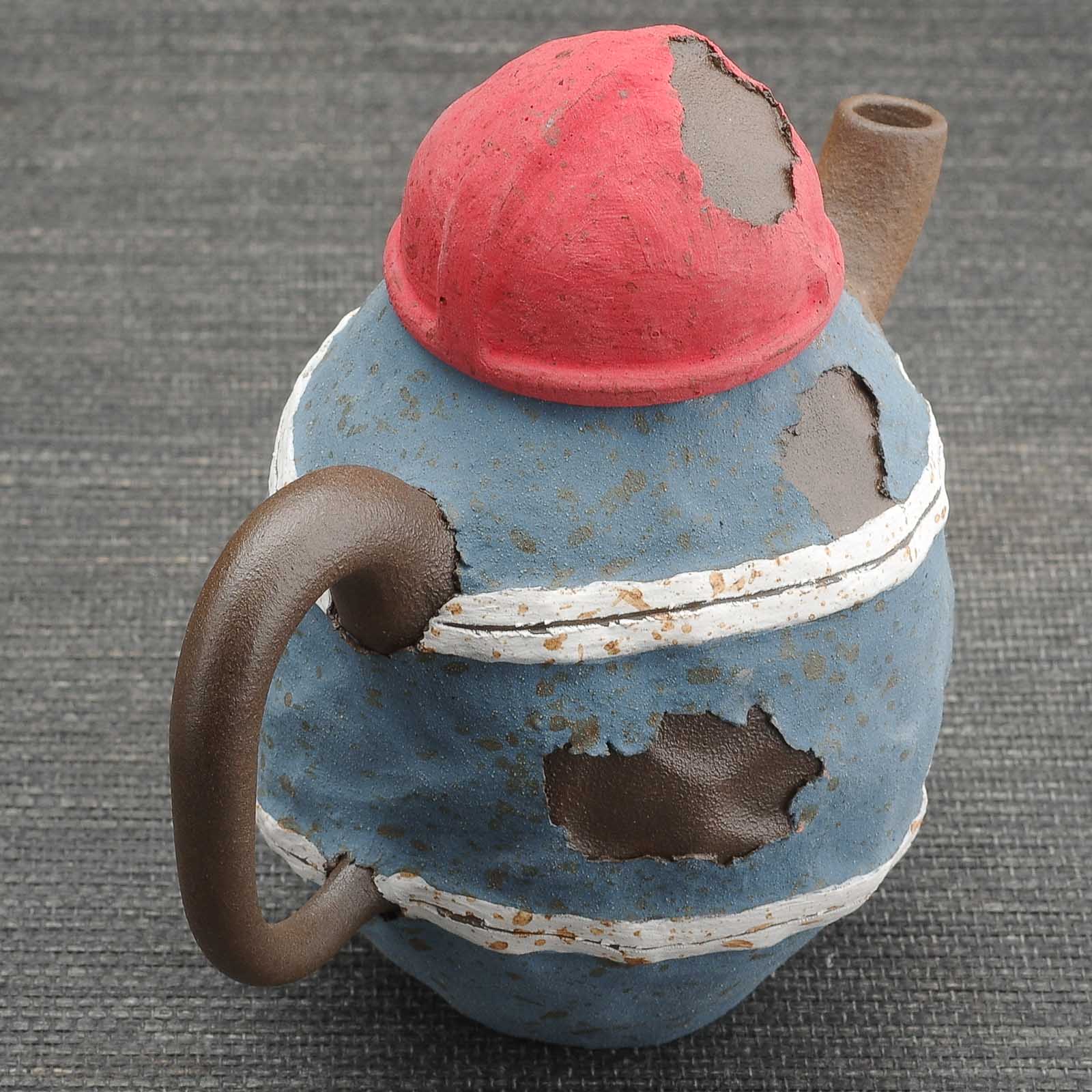 Работа от эксцентричного мастера Ли Шикэ, не стремящегося копировать популярные на рынке стили. Он рушит стереотипы о форме и сути циньчжоуской керамики, создавая новые вехи для керамистов. Практически каждая работа мастера сейчас делается на заказ для коллекционеров и ценителей керамики. Известен своими работами в стимпанк стиле, занимающими места на соревнованиях национального уровня. Увлекается дровяным обжигом. И не имеет штата сотрудников и учеников. Каждая работа с его клеймом выполняется им самостоятельно.