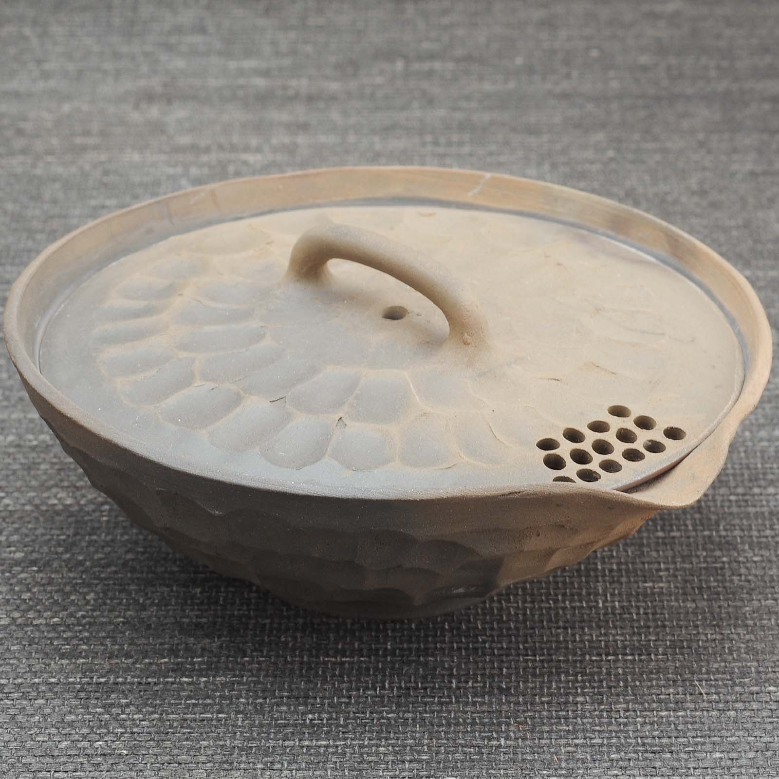 Работа от эксцентричного мастера Ли Шикэ, не стремящегося копировать популярные на рынке стили. Он рушит стереотипы о форме и сути циньчжоуской керамики, создавая новые вехи для керамистов. Практически каждая работа мастера сейчас делается на заказ для коллекционеров и ценителей керамики. Известен своими работами в стимпанк стиле, занимающими места на соревнованиях национального уровня. Увлекается дровяным обжигом. И не имеет штата сотрудников и учеников. Каждая работа с его клеймом выполняется им самостоятельно.