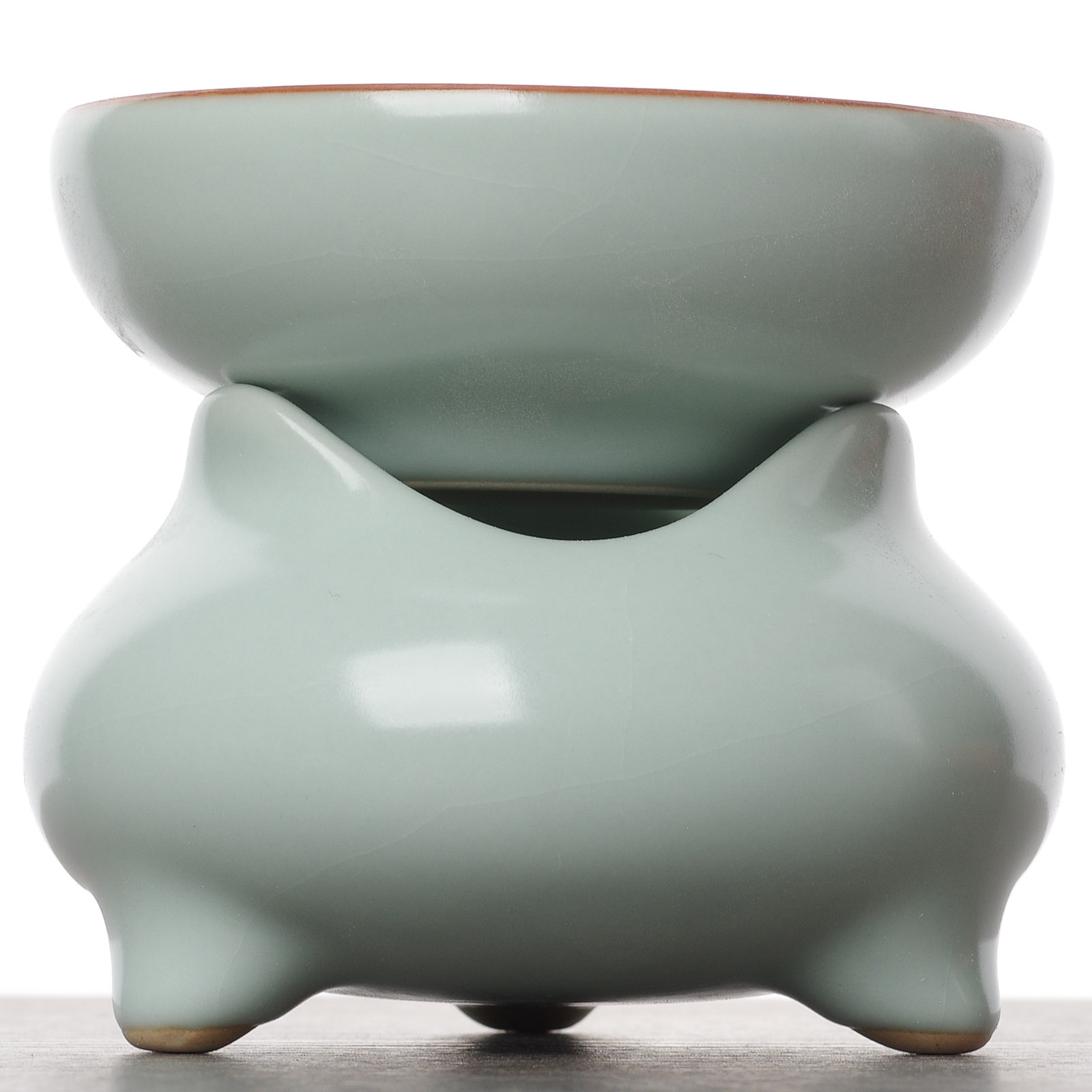 Особенностью керамики является открытый цек. При использовании сита, чай полностью окисляется в трещинках, тем самым создавая эффект состаривания посуды.