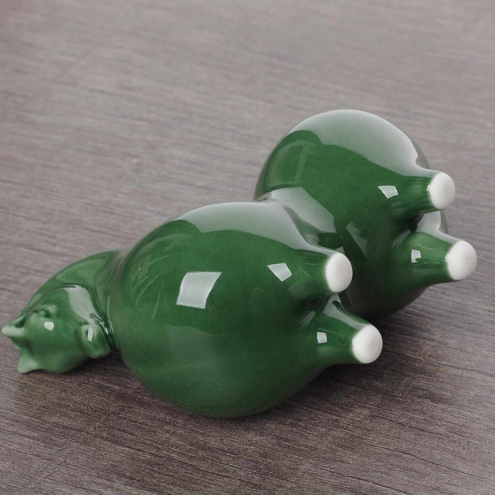 Выполнена из фарфора с целадоновой глазурью;
