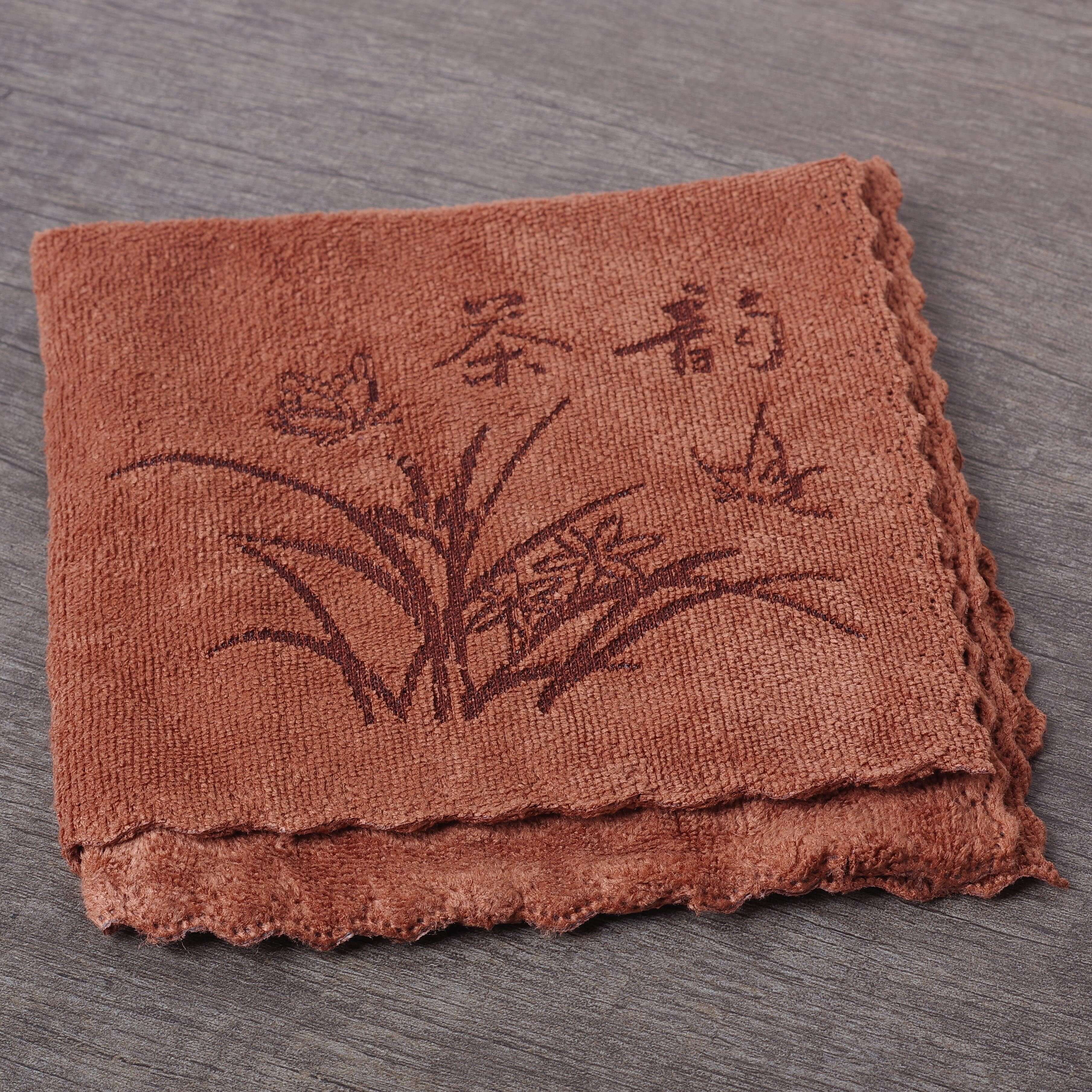 Полотенце для чайной церемонии Чабу Орхидея, коричневое, 30х30см (80106)