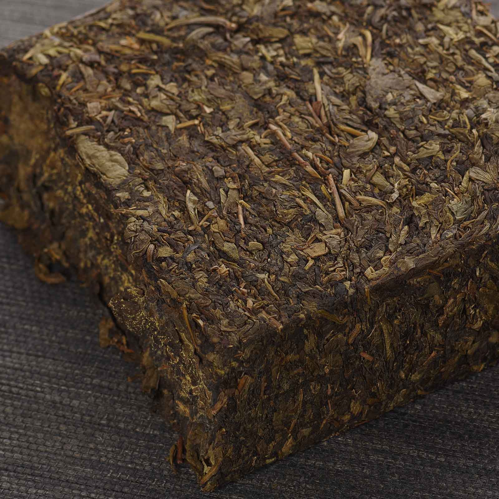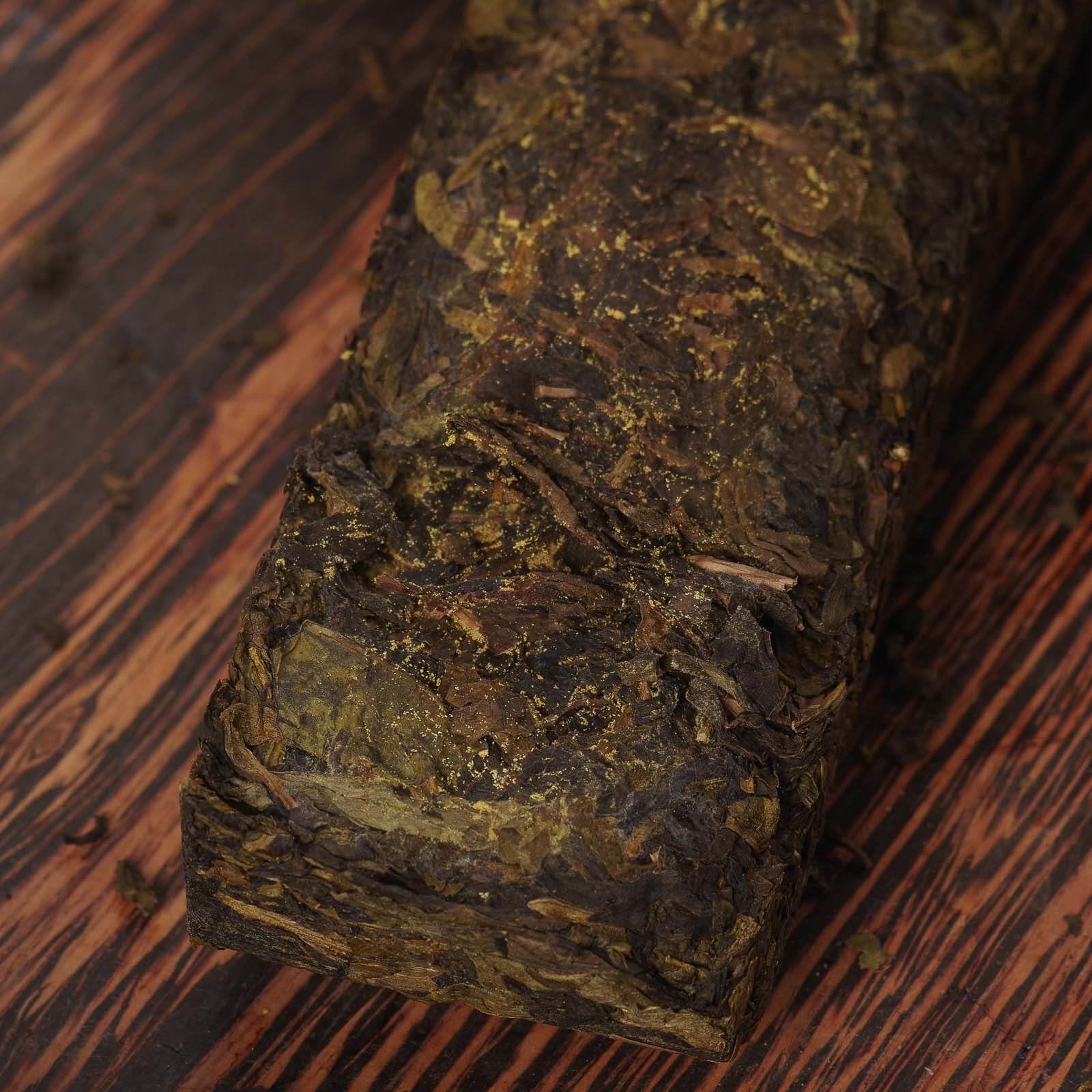Молодой фучжуань хэйча ручной прессовки состоит из очень качественного сырья с дикорастущих чайных деревьев окрестностей Гао Ма Эр Си Цун 高马二溪 и собран в брикеты совсем недавно, в сентябре этого года.