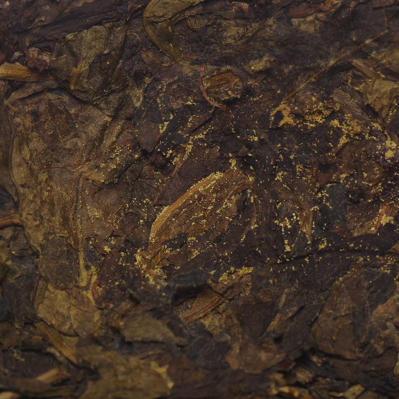 Этот молодой фучжуань с золотой плесенью представляет собой чай с утонченным и сложным ароматическим профилем. Аромат сухого листа нежный, ореховый и бархатистый с нотами пекана, свежих семечек подсолнечника и ореховой помадки, слегка дополненный оттенками свежей хлебной мякоти, создавая многослойный и сложный букет. В прогретой посуде аромат свежих или чуть сушеных орехов, особенно пекана и кешью, становится более живым и бархатистым с легкой сладковатой растительной маслянистостью.