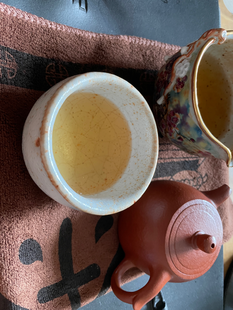 Аромат сухого листа глубокий, с солоновато-минеральным тоном, дополненным сухофруктовыми нотами кураги и черного изюма. В прогретой посуде проявляются кунжутные и подсолнечные семечки, структура аромата сухая с песочной текстурой. Заваривание проявляет выраженную камфорную ноту, влажную древесину и насыщенный букет сухофруктов: курагу, инжир, яблочный компот и узвар из груши-дички. В аромате настоя доминируют злаковые и ореховые нотки: кунжут, ядро подсолнечника и щепа фруктового дерева. Вкус нейтральный и ровный, без терпкости и горечи, с длительным леденцово-камфорным послевкусием. Оно пряное, с камфорой, леденцовой карамелью и яблочным соком. Шлейф содержит леденцовый сахар и подсолнечные семечки, давая ощущение легкой сладости и маслянистости.