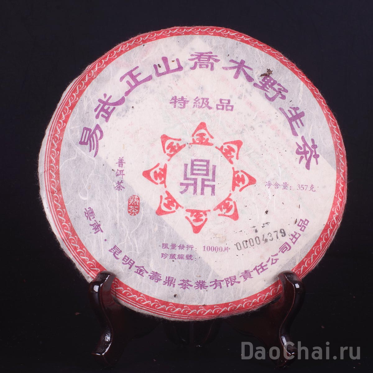 Прекрасный шу пуэр с прямоствольной формы дерева Цяо Му из окрестностей Иу горы Чженьшань. Всего выпущено 10000 лепёшек, каждый блин имеет уникальный порядковый номер и по праву считается коллекционным экземпляром. Чай отобран вслепую в городе Куньмин на основании вкусовых качеств. В сухом виде это плотная лепёшка с мелким сырьём и благородным глубоким ароматом орешков. Обданный кипятком, удивляет своей нотой выдержанного вина. Настой ароматный, маслянистый, с лёгким кофейным послевкусием и нотами вафли в аромате. Шлейф волшебен – интенсивен и долог на протяжении всего чаепития. Даже сухая пиала «шлейфит». Чай мощно сосредотачивает, растворяет в пространстве и обостряет восприятие, делает вас не вами. Можно зависнуть и потеряться. К знакомству с этим чаем нужно подготовиться. При внимательном пробовании создает «затылочный эффект» и мурашки. Послевкусие обволакивающее кофейное. Очень сильный чай!