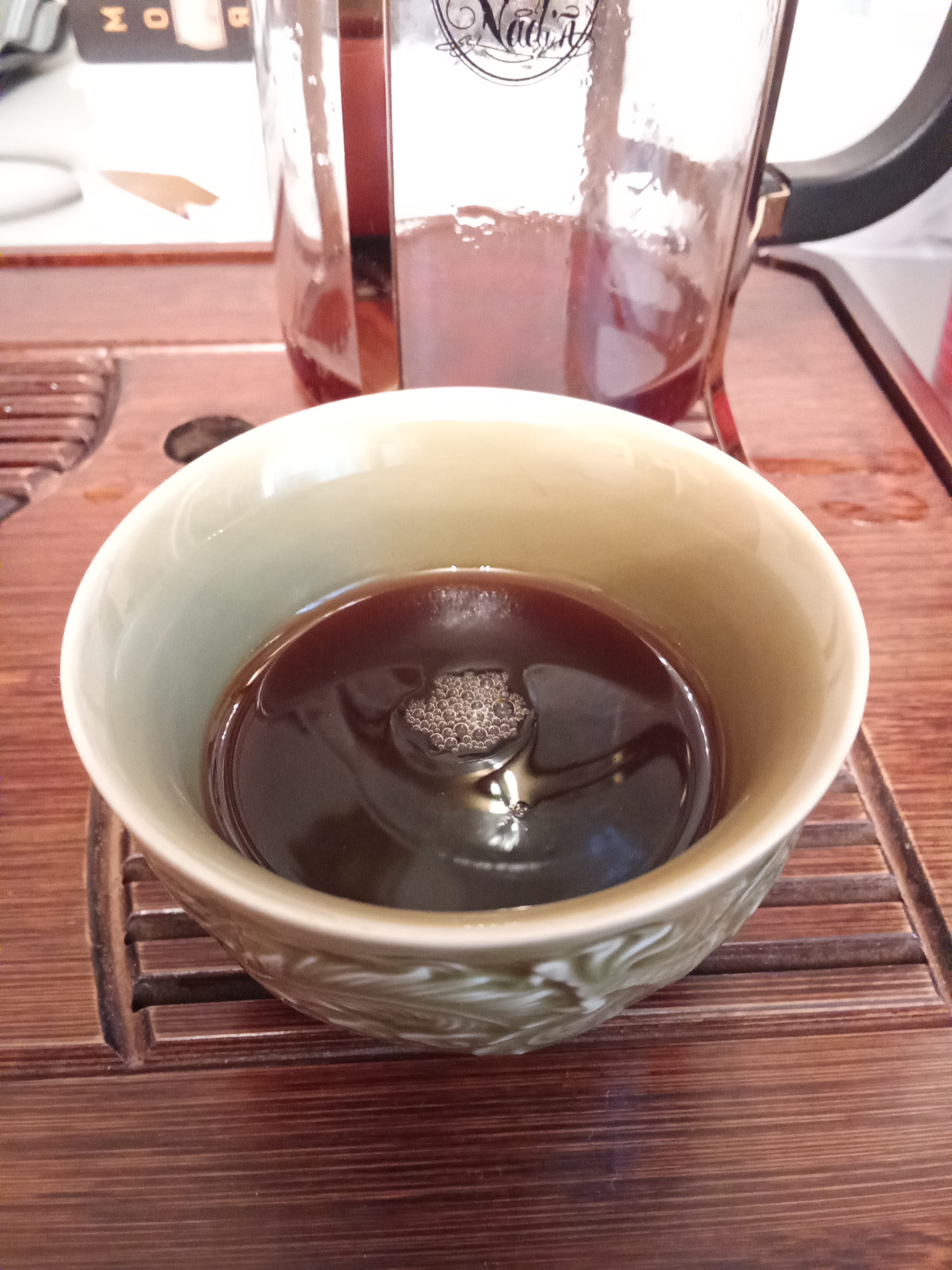 В сухом листе аромат по характеру влажный, тут сливочные оттенки, вареное сгущеное молоко, сладкий карамельный фон, мягкий и бархатистый. В прогретой гайвани усиливается, начинает доминировать древесно-землистый подлесок со свежей корой лиственных деревьев. Нуга и вареная сгущенка остаются. После встречи с кипятком появляются ягодные оттенки, молочность вырождается в сливочную густую кашу. Аромат густой, яркий и интересный. Шлейф приятный и «дорогой», в верхних нотах ореховая помадка, потом древесные бархатистые оттенки, без резкости и колкости. Настой древесный и минеральный, вкус легкий сначала, с нарастанием плотности и терпчинки. В послевкусии дерево и скорлупа фундука. В остывшем листе шоколад и какао-бобы, бисквит, а на поздних проливах древесно-минеральные оттенки - прогоревшая спичка. Заваренный покрепче становится плотным и отсекает обертона у вкуса, но оставляет фундучное послевкусие. Поэтому пуэр чувствителен ко времени экспозиции.
