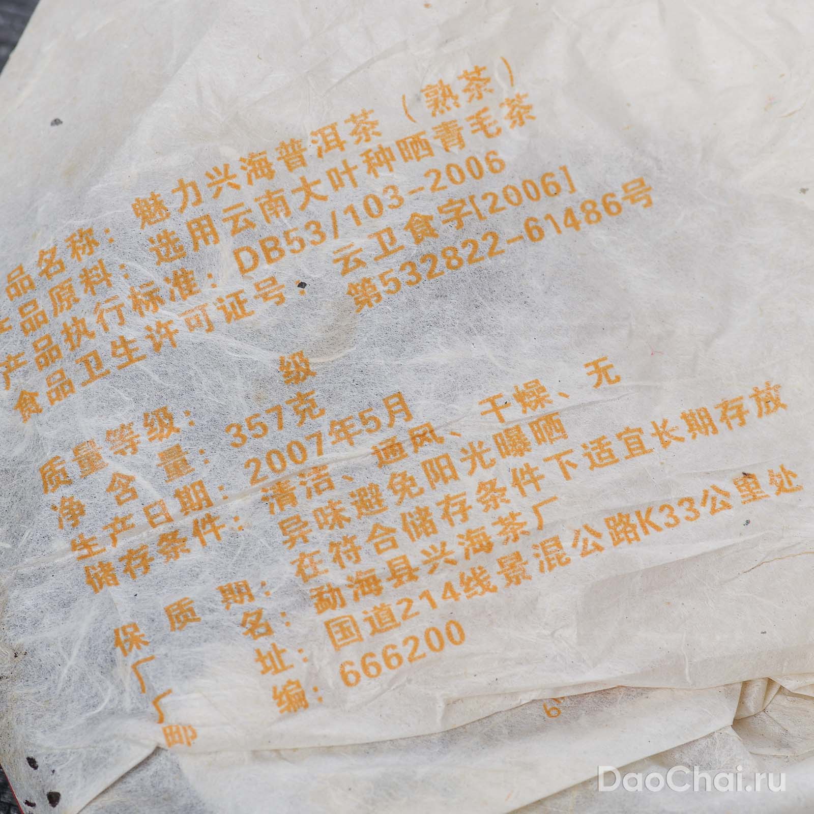 Шу Пуэр Мэйли "Харизма", Синхай, 2007