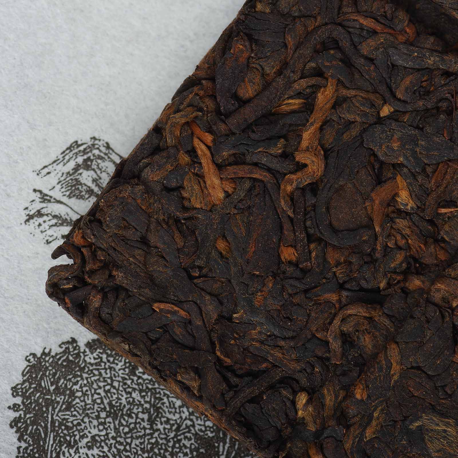 Шу пуэр в удобном формате и хорошей упаковке с антиконтрафактными пломбами от завода Шоучжо. 36 грамм в виде 6 долек. Плитка тонкая, дольки легко ломаются, пресс щадящий, поэтому мелкой фракции и крошки не будет. Название этого чая 益生菌 "Пробиотик" или "Полезный грибок" полностью отражает профиль этого чая на всех стадиях открытия и заваривания. В сухом листе не очень яркий - палая листва, забродившие фрукты, слоеное сырое тесто. В горячей гайвани толика травянистых ноток быстро целиком затмевается бродящими фруктами, ароматом фруктового вина и настоек. Именно такой профиль будет сохраняться до самого конца. Настой мягкий и маслянистый, но несмотря на малую порцию в 6гр, чай отзывчиво реагирует на время экспозиции, способен завариваться в густую нефть и дать выраженную горчинку. В послевкусии те же перезрелые фрукты. В шлейфе фруктово-ягодная брага, перегной, палая листва, влажная земля.