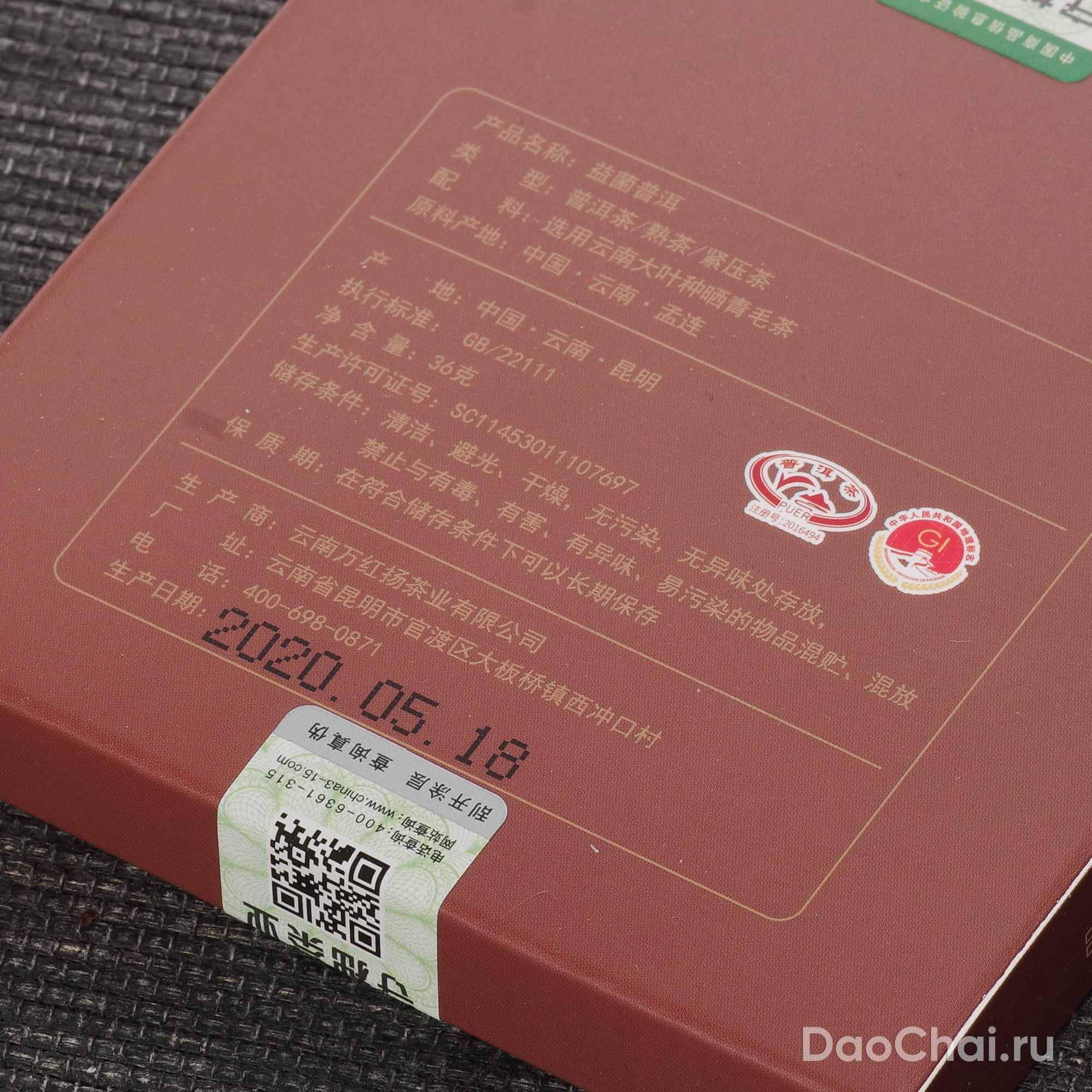 Шу пуэр "Шоколадка Пробиотик", 36гр, 2020